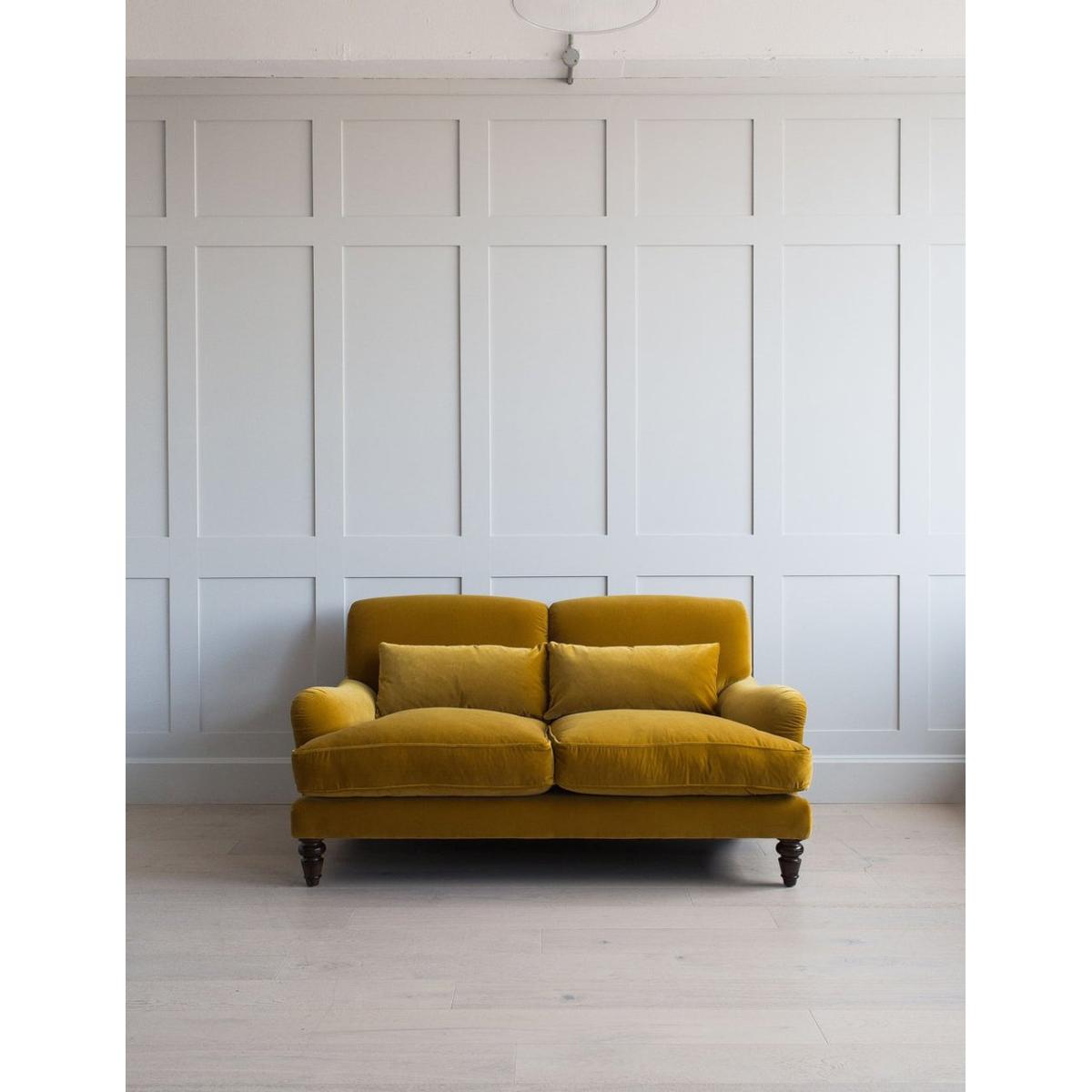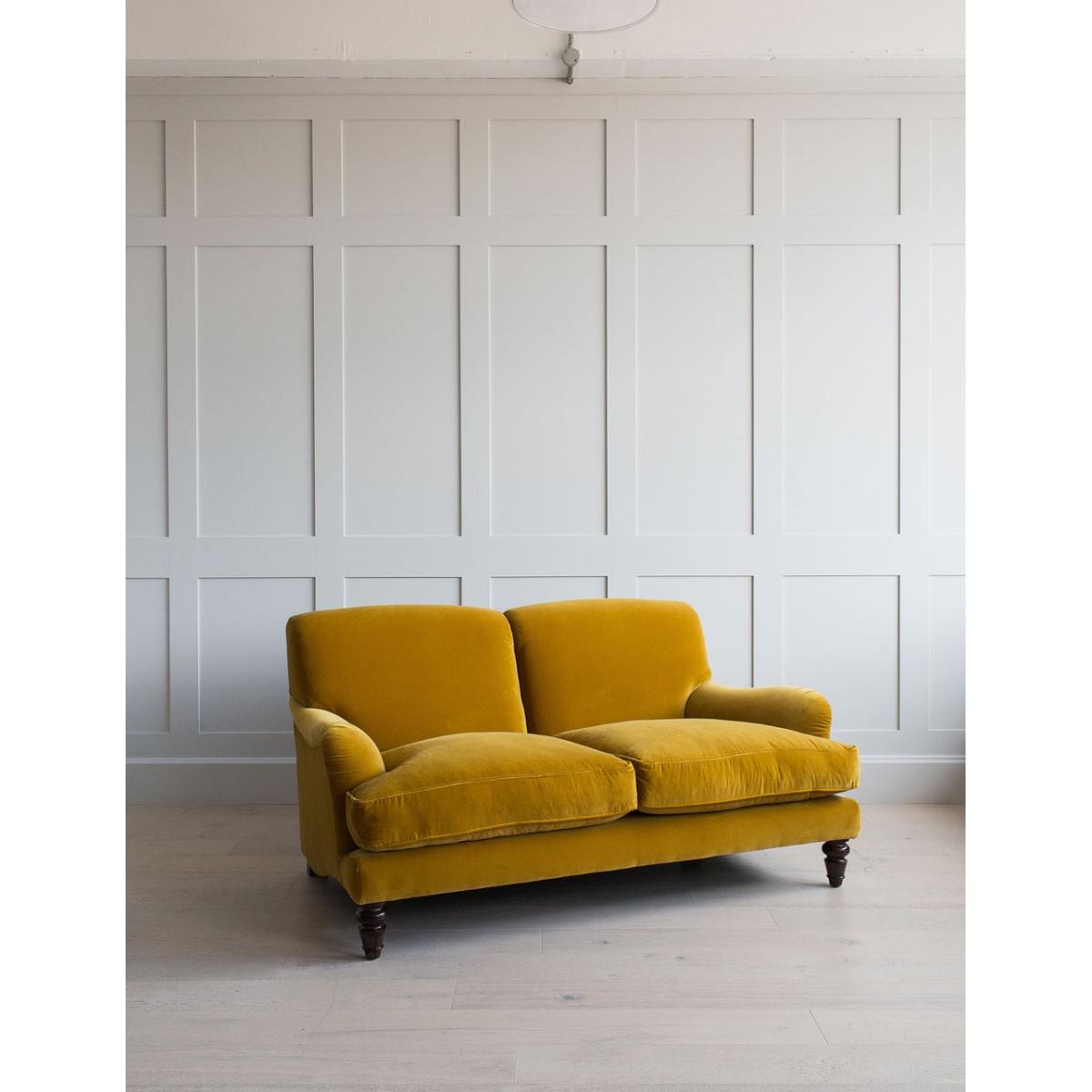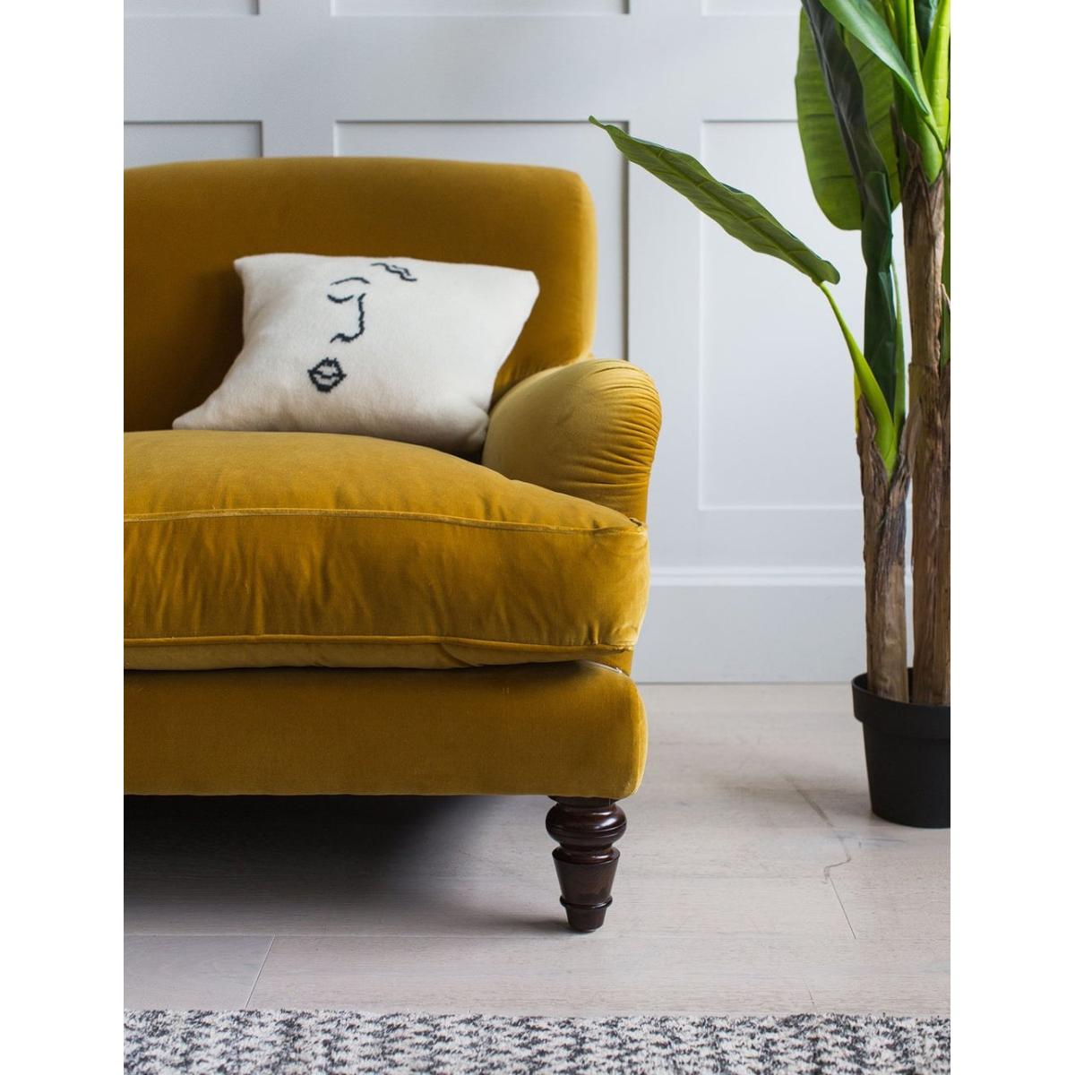 If you’re the type of person who loves to kick off their shoes and lounge on your sofa, meet Mabel. One of our most squishy and comfy sofas, the Mabel offers the ultimate in comfort without compromising on style. Choose from both neutral and vibrant colours, dependent on whether you want a statement sofa or a more classic design. Pair with the matching armchair or mix-and-match with the rest of our Snuggle collection. Photographed here as a Two Seater in Mustard Velvet and Vintage Green Velvet. The leg colour in the photograph image is Dark Mahogany. All other images are computer generated as a colour reference with a Driftwood leg. We recommend you order a free fabric swatch to see your chosen material up close before ordering your sofa, armchair or footstool!