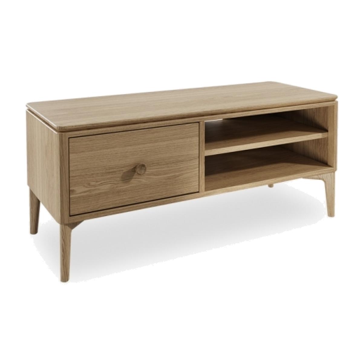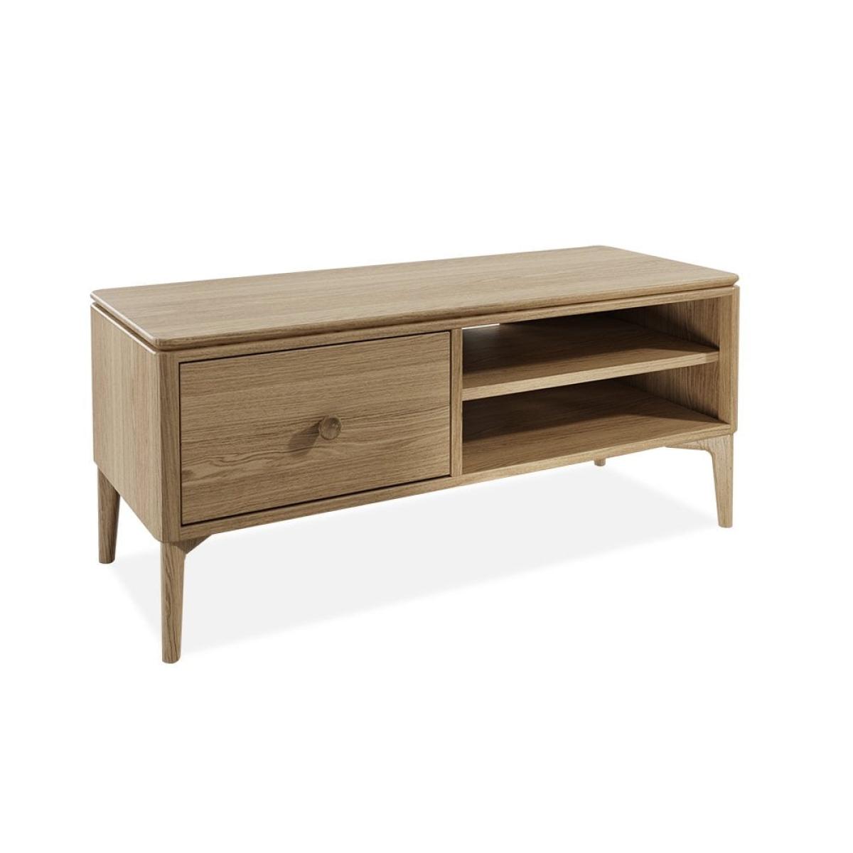 With its natural wood finish, the Mabel TV Unit brings a touch of Scandinavian style into your home. Designed by the award-winning British furniture designer Tim Fenby, this TV Stand is a classic with a clean and airy feel that will integrate seamlessly into your living room. The smooth light wood surface is spacious with two deep shelves and one drawer for all manner of living room clutter, set upon sturdy wooden legs. View The Mabel Range