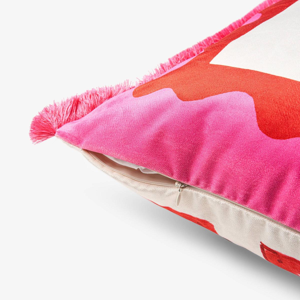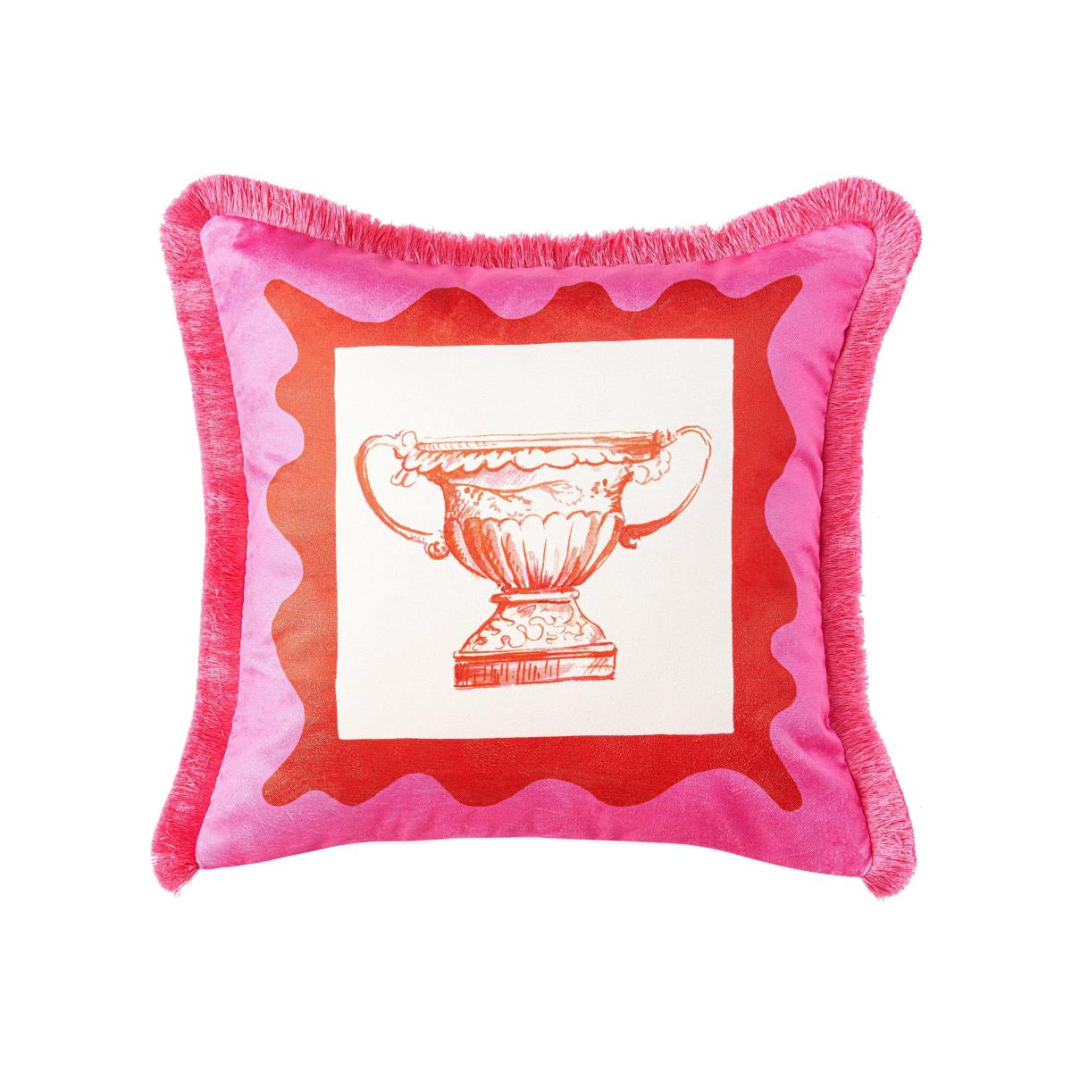 Our Mabelle cushion cover celebrates a love of antiquities you might discover on a Mediterranean escape. A beautiful home accessory that will layer your space with storytelling, it's sure to be a conversation starter. It features a Greco-esque urn surrounded by a bold splash of fushia pink. Style on your sofa or favourite chair and show off your home's playful side.