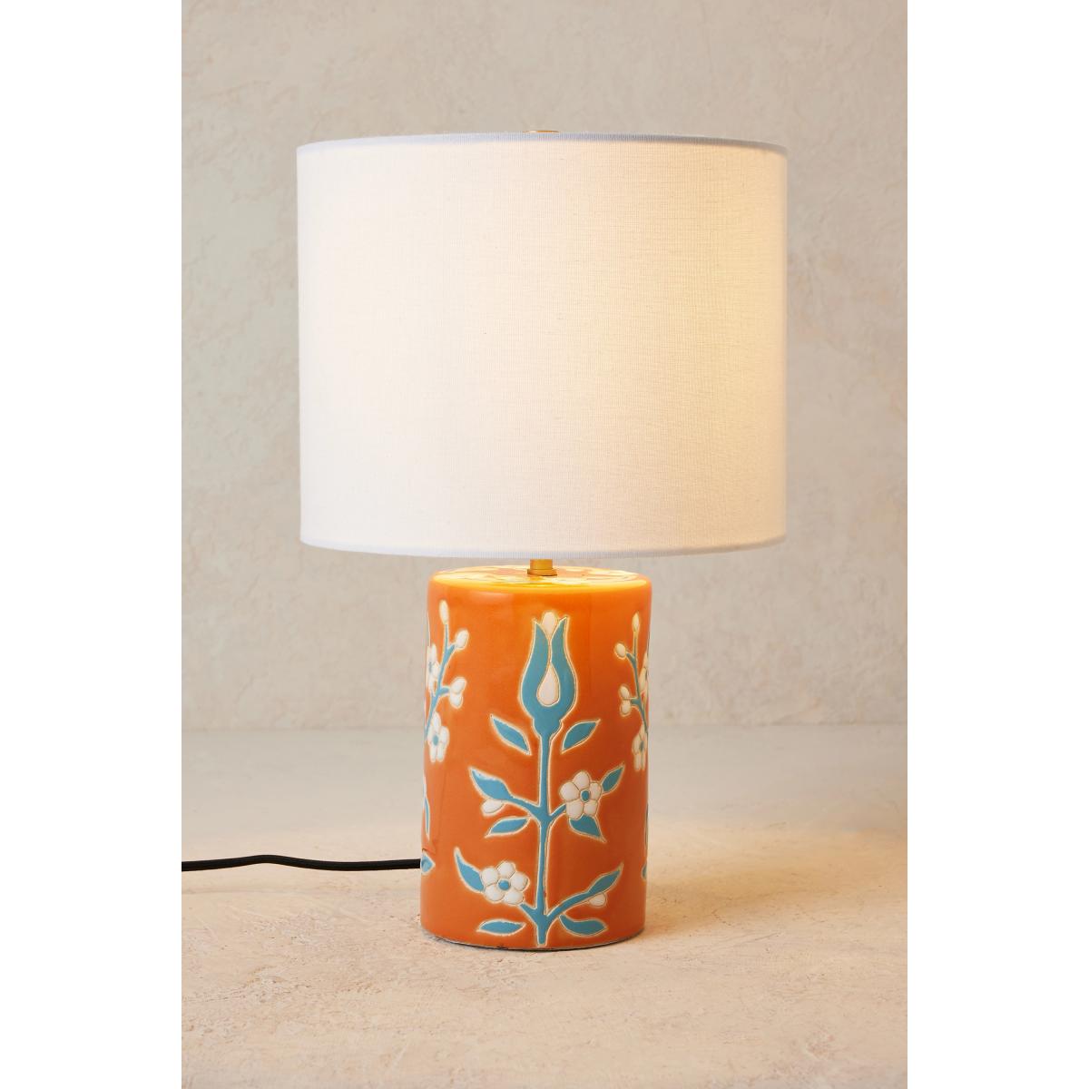 Crafted from ceramic, this desk lamp will illuminate your bedside table (perfect for some late-night reading), side table or the desk in your home office.*This item is CE listed, meaning it has been tested and approved to meet the government-regulated safety standards for the UK. Use with electrical outlets of 230v or lower, as anything higher can cause fire or injury. If you're purchasing this item for use outside of the United Kingdom, employ the adapter and voltage converter suited for your country. * * Ceramic; cotton shade * Shade included * One light socket * Includes matching harp and finial * Fitted with a plug and on/off switch * 60 watt max * We recommend using type B / E26 bulbs * CE listed * Imported