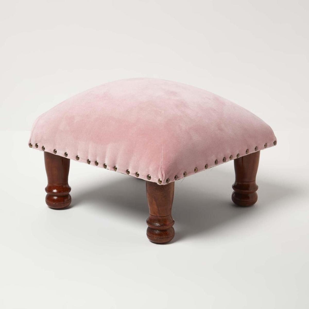 Handcrafted solid wood footstool from Homescapes. Combining modern colours and expert design, the Mabel velvet footstool is the perfect addition to any home. A timeless piece that is comfortable, practical and stylish, this versatile pouffe will add a pop of colour to your interior design. Upholstered by skilled artisans, the 100 cotton velvet is generously filled with durable polyester fibre that will retain its shape for years to come. Finished with press-stud edging and sitting on stained and lacquered solid wooden legs this sturdy footstool can be used as a footrest, occasional seat or even emergency coffee table! Rich in colour, this jewel-toned footstool is part of Homescapes velvet collection, allowing you to mix and match and create the perfect look for your home. The range includes velvet chair pads, throws, cushions and bean-filled pouffes available in colours including burnt orange, mustard, pink, teal and grey. The Mabel velvet footstool comes in 2 sizes. A square pouffe measuring 40 x 40 cm and 25 cm tall, and a larger rectangular footstool measuring 50 x 30 cm and 40cm tall.