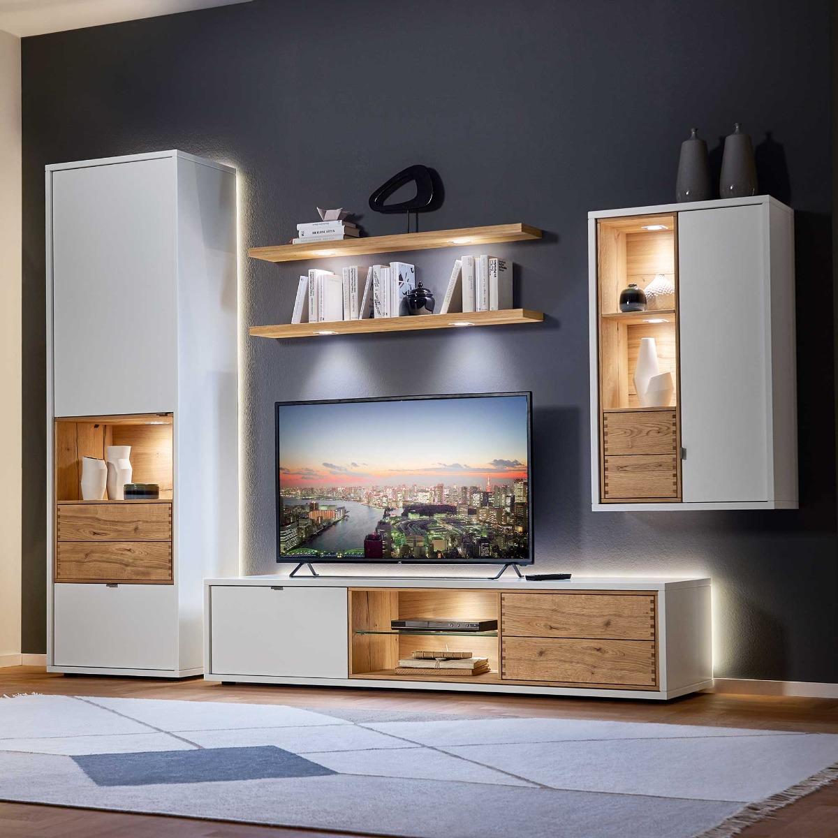 Macao TV Wall Unit Santana Oak/ Lacquer Crystal White Matt | Barker & Stonehouse