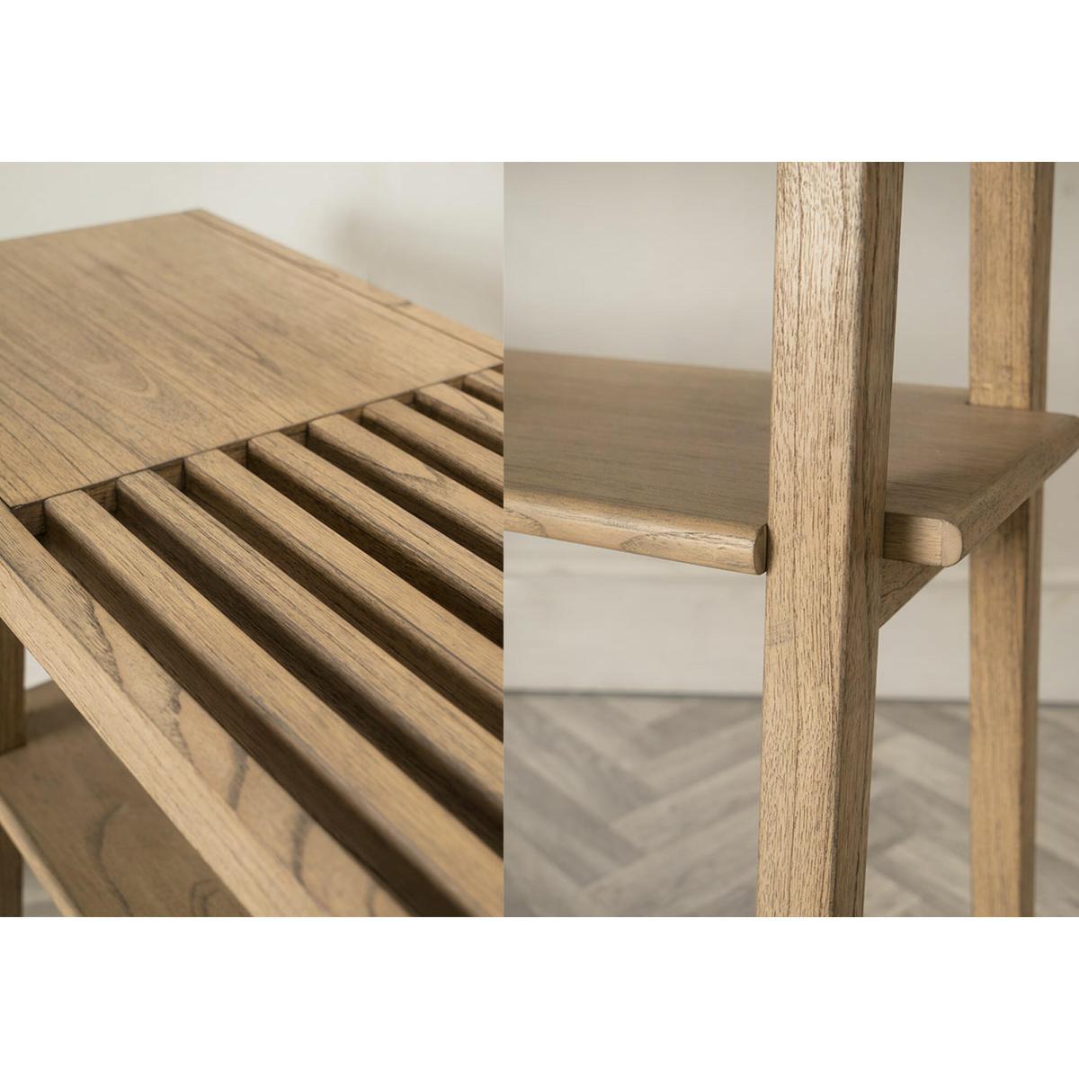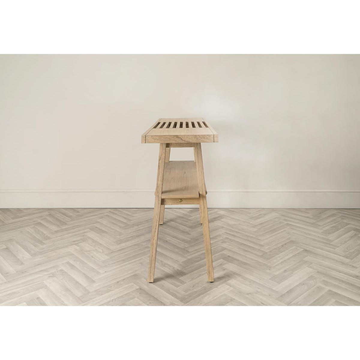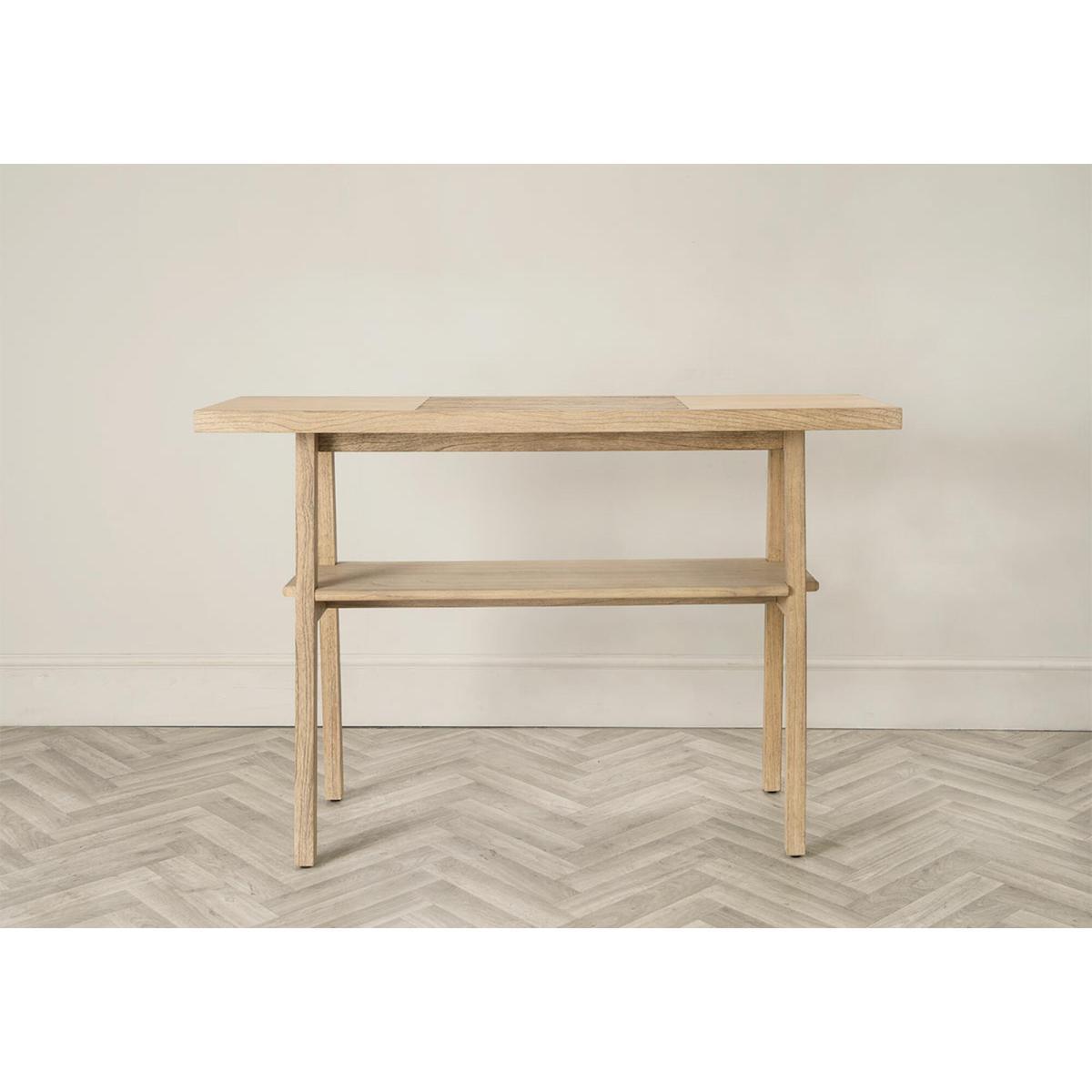 I’m a fan of the Mindi console for its pared-back silhouette and warm, pale wood tone - it brings a sense of calm without overwhelming a hallway or living space. Its slim proportions work equally well in Scandi-inspired, coastal or modern farmhouse interiors, and the lower shelf offers a handy spot for woven baskets or a neat row of coffee-table books. To style it, try anchoring a round mirror above to soften the angles, then layer a low-profile lamp, a stack of design books and a small potted plant for interest. On the shelf below, group two matching baskets in natural fibres to conceal mail or throws, keeping surfaces clutter-free and the overall look light and inviting.