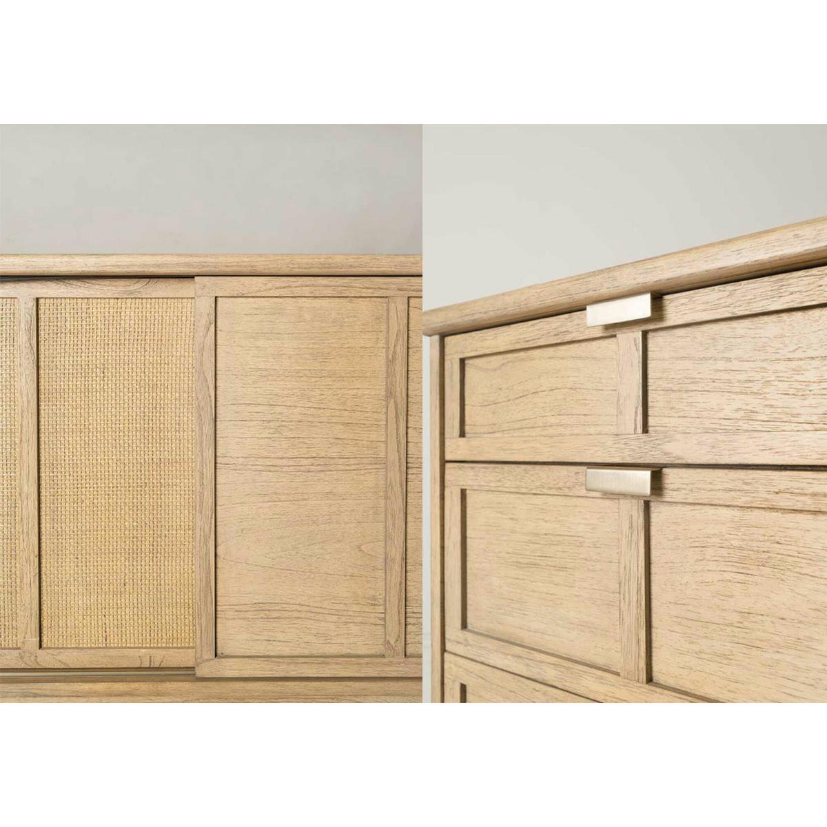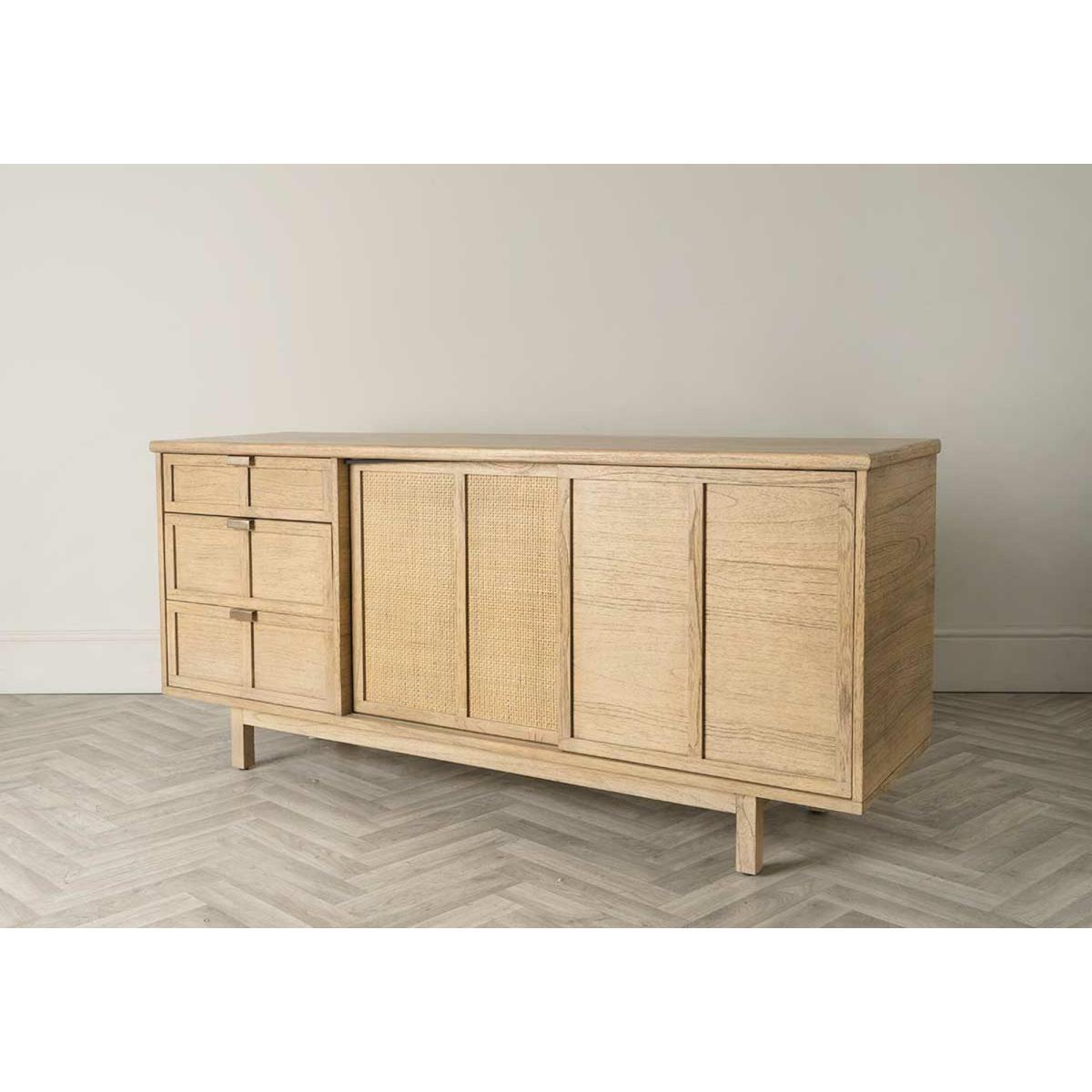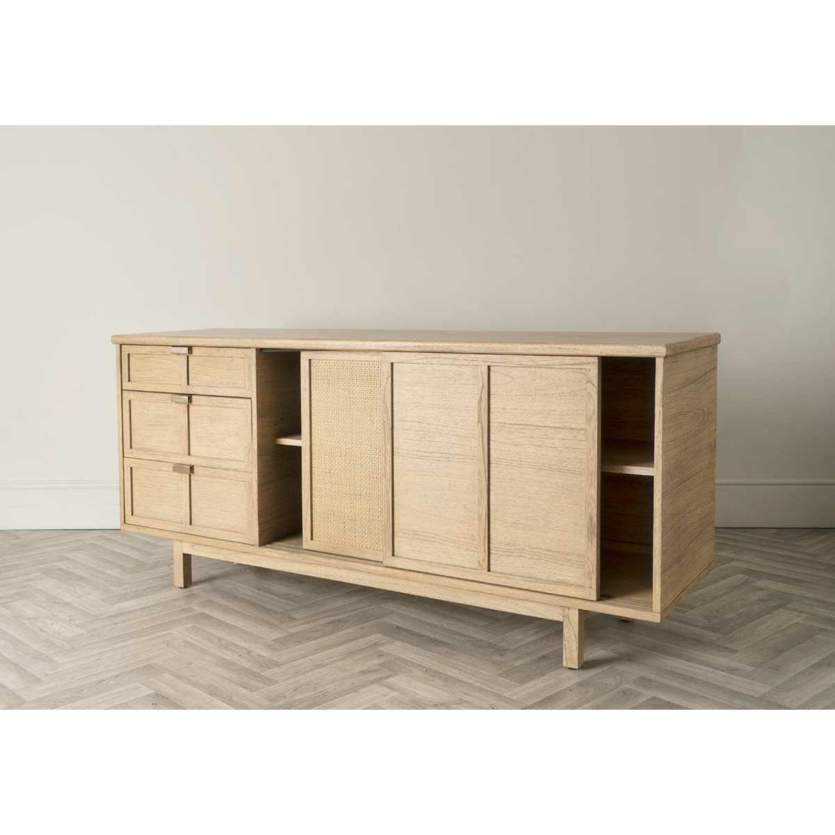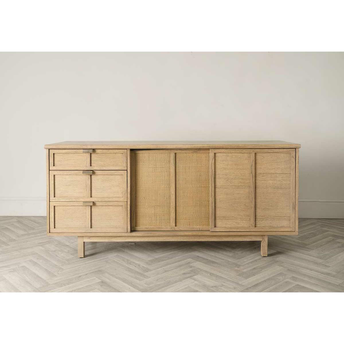 I’m a big fan of the Macawen sideboard for its clean lines, pale Mindi timber and woven cane panels - it feels right at home in Scandi-inspired, coastal or contemporary schemes. It’s equally useful as a media console or in a dining room for hidden storage, and the low profile keeps sightlines clear. To style it, try grouping a sculptural lamp, a stack of coffee-table books and a small plant on one side, leaving the other side free for a neat tray or ceramic vase. Store everyday clutter behind the doors for a calm, collected look.