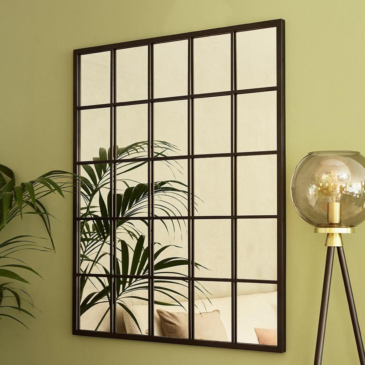 Why settle for a single mirror when you could have 25? The large industrial black frame holds a 5x5 mirror design to create a window frame effect. A shimmering display of industrial chic, the geometric design of this accent mirror makes a striking statement. Perfect for livening up an empty hallway, the 25 mirrored tile design of the Mace mirror makes an eye-catching display in the home, bar, or restaurant. Also available in a warming brass frame. This product is handcrafted, making each piece unique with naturally occurring texture, pattern, and colour. The natural materials used makes this product special and unique to you.