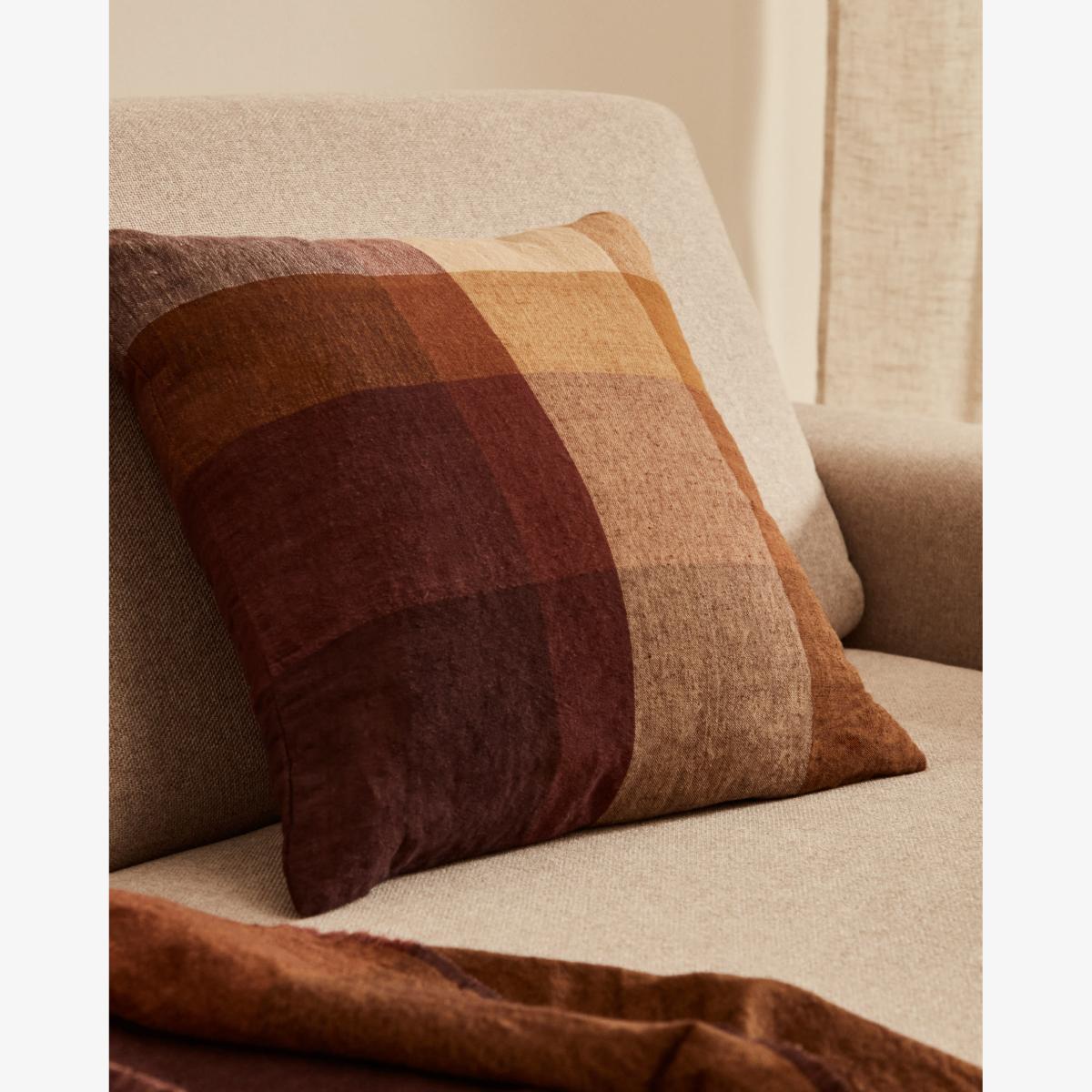 I love this cushion because of its vibrant, multicoloured check design, which adds a lively touch to any space. It works particularly well in relaxed, eclectic interiors or boho styles, where layering different textures and patterns is key. Practical styling tips include pairing it with neutral or earth-toned throws and other cushions to create a cosy, inviting aesthetic. Its size (45x45cm) makes it versatile for sofas and armchairs, and the linen-cotton fabric ensures durability while maintaining a soft, comfortable feel. This piece is perfect for adding a pop of colour and pattern without overwhelming a room, making it a go-to element for casual, welcoming interiors.