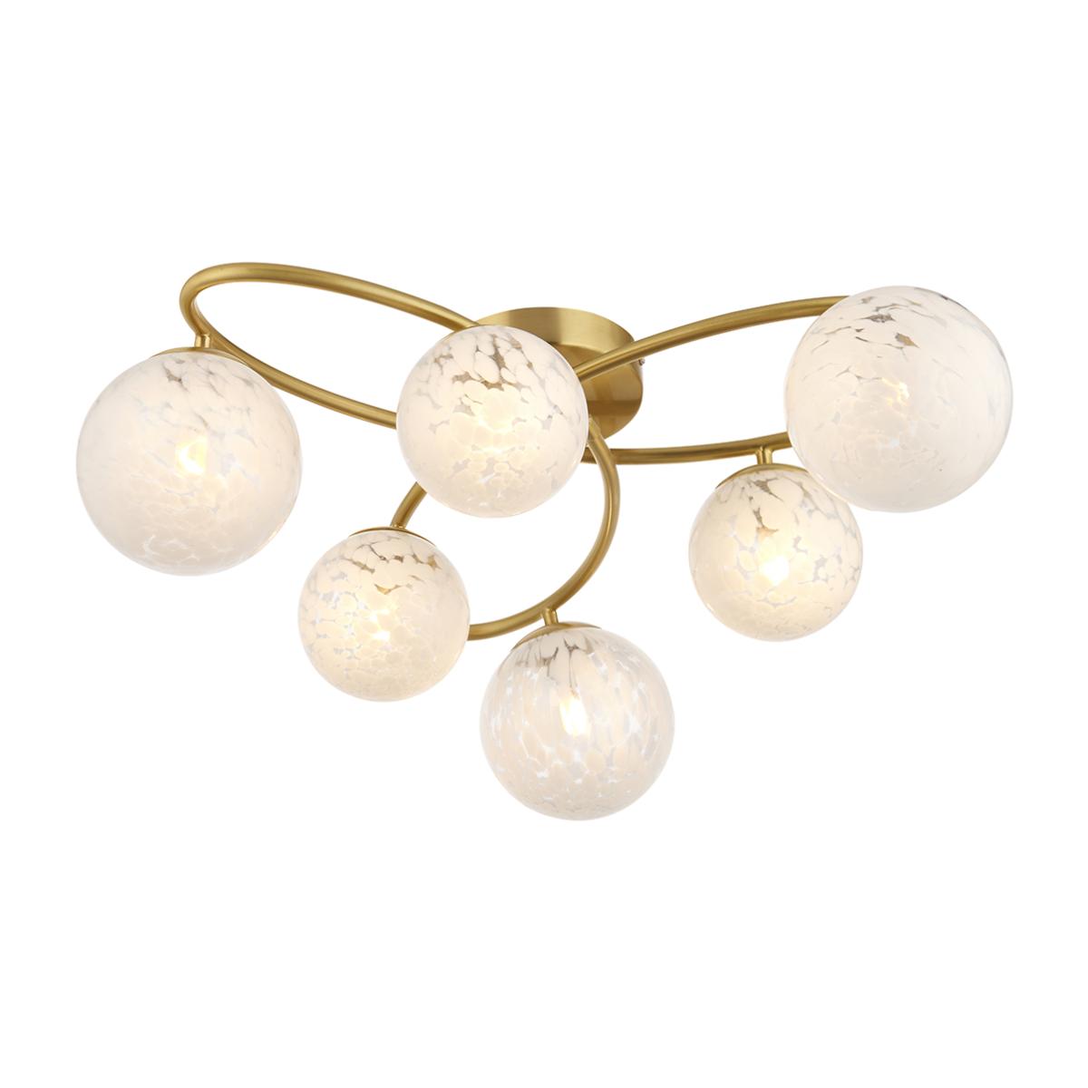 Macey White Confetti Glass Six Light Semi Flush Light in Brass