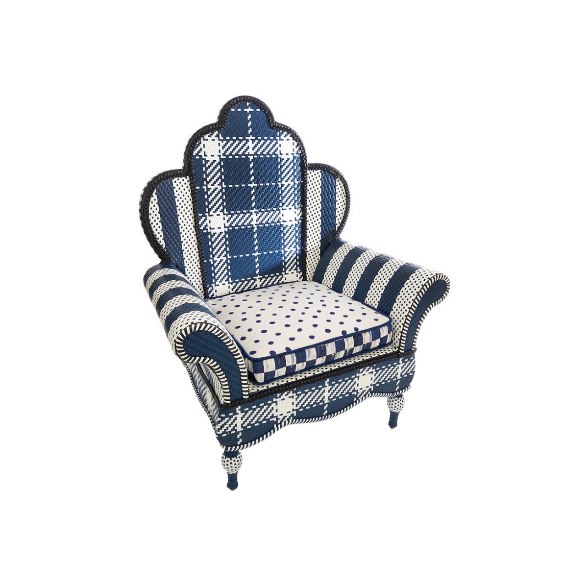 I love this wing chair because it brings a playful, nautical touch to outdoor spaces while remaining versatile enough to use indoors if desired. Its classic blue and white check and stripe pattern make it perfect for summer gardens, cottage-style interiors, or coastal-inspired rooms. For styling, pair it with neutral cushions or a bright throw to keep the look fresh. It works well with natural textures like rattan or wooden furniture, creating a casual yet polished aesthetic. Keep in mind, it's ideal for shaded or sheltered outdoor areas to protect the fabric, ensuring it maintains its charm through seasons.