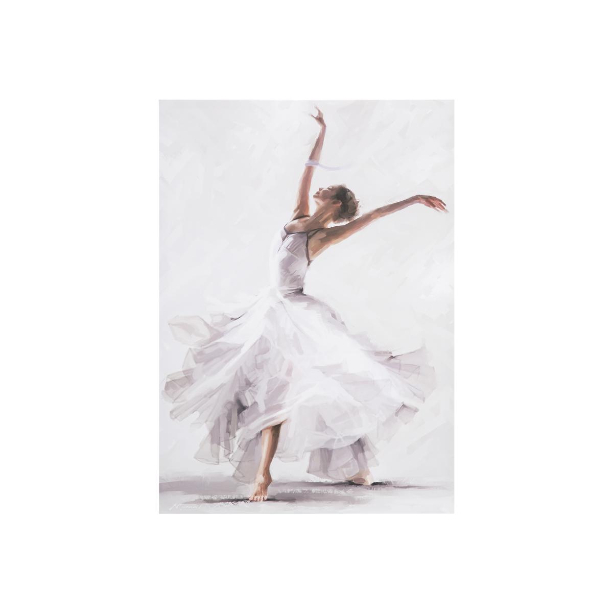 The Winter Solstice Dancer Canvas by Richard Macneil is a beautiful illustration, showcasing a lady in a ruffled white dress as she strikes an elegant and graceful ballet pose. Using light shades to create a sublime and delicate piece of artwork, this wall hanging will give your space a wonderful classic feel.
