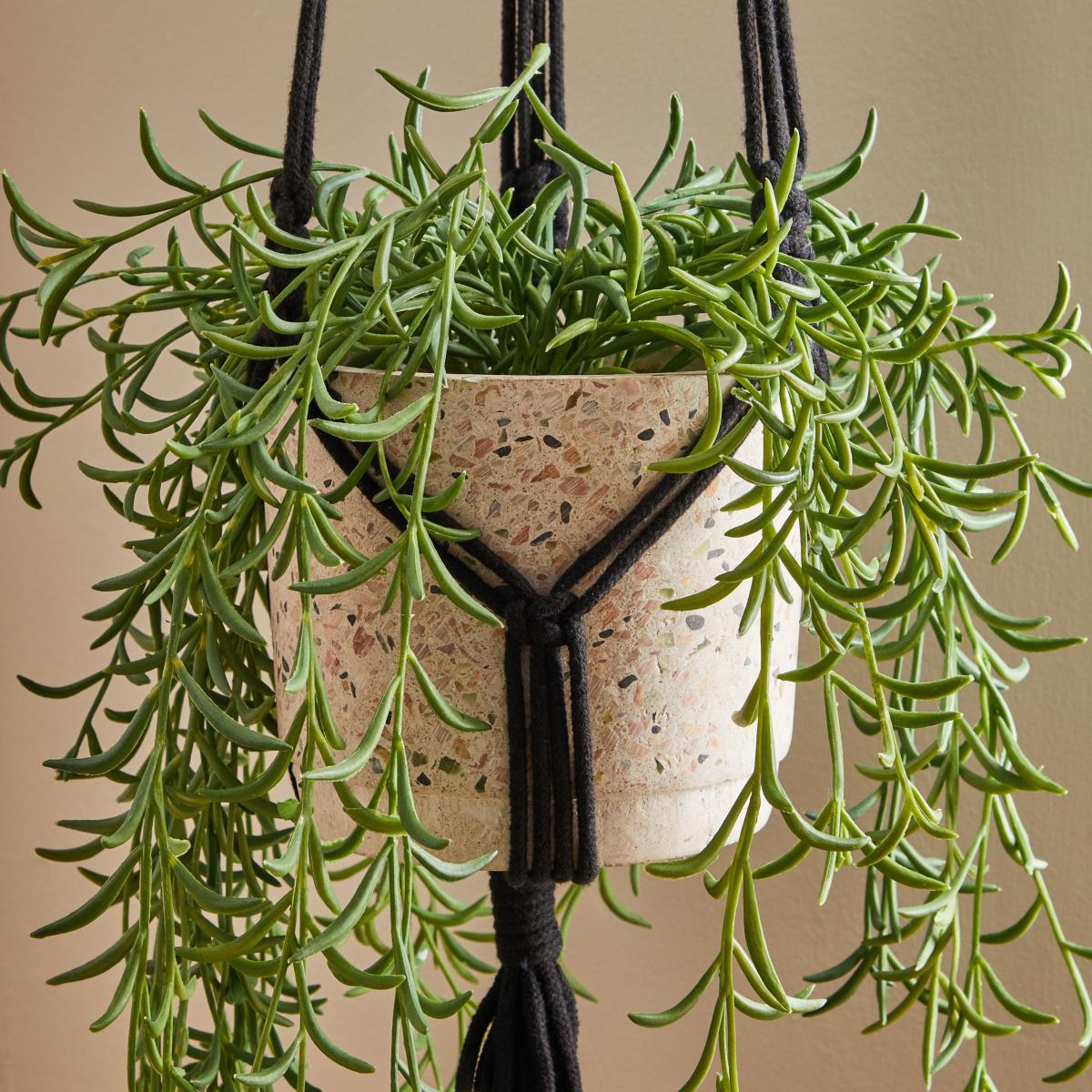 I love this black plant hanger - it’s a versatile piece that adds a touch of boho charm while remaining sleek and modern. The macramé style lends itself well to both contemporary and eclectic interiors, especially in spaces with natural textures or neutral palettes. It's perfect for creating a focal point in corner nooks or hanging near windows to maximise light for your plants. For styling tips, try pairing it with a variety of trailing or leafy plants to add movement and greenery. Hanging it at different heights can also help to create visual interest and keep the space feeling layered and cosy.