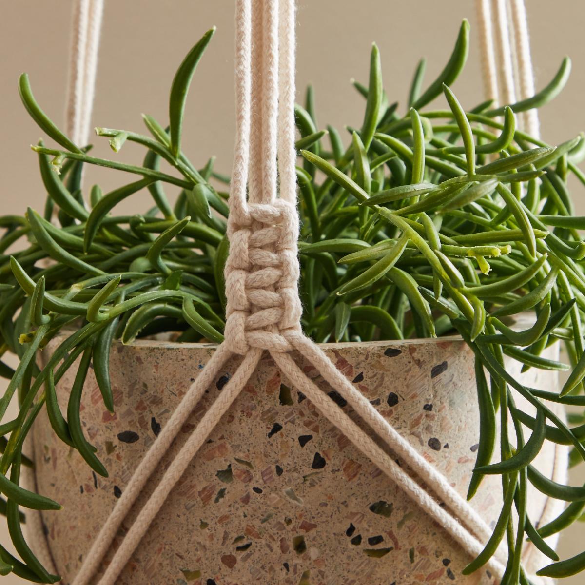 Featuring a beautiful macrame design, perfect for holding any plant pot in your home. This decorative piece will add a touch of class to your home and with its natural colourway, this macrame plant hanger will compliment an array of home decors beautifully.
