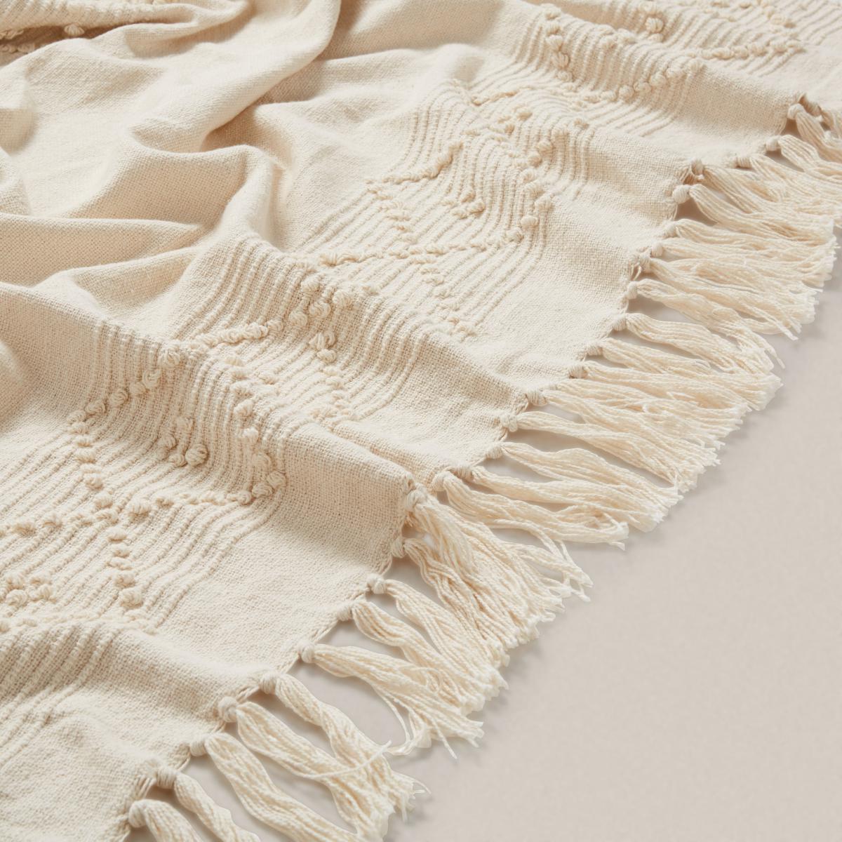 Designed with macramé detailing, this soft feel throw is crafted from 100% cotton with a delicate fringed edging. This throw is an ideal addition to any bed, sofa, or chair for a cosy feeling. Our throws are not flame retardant and are therefore not suitable as loose covers on upholstered furniture.