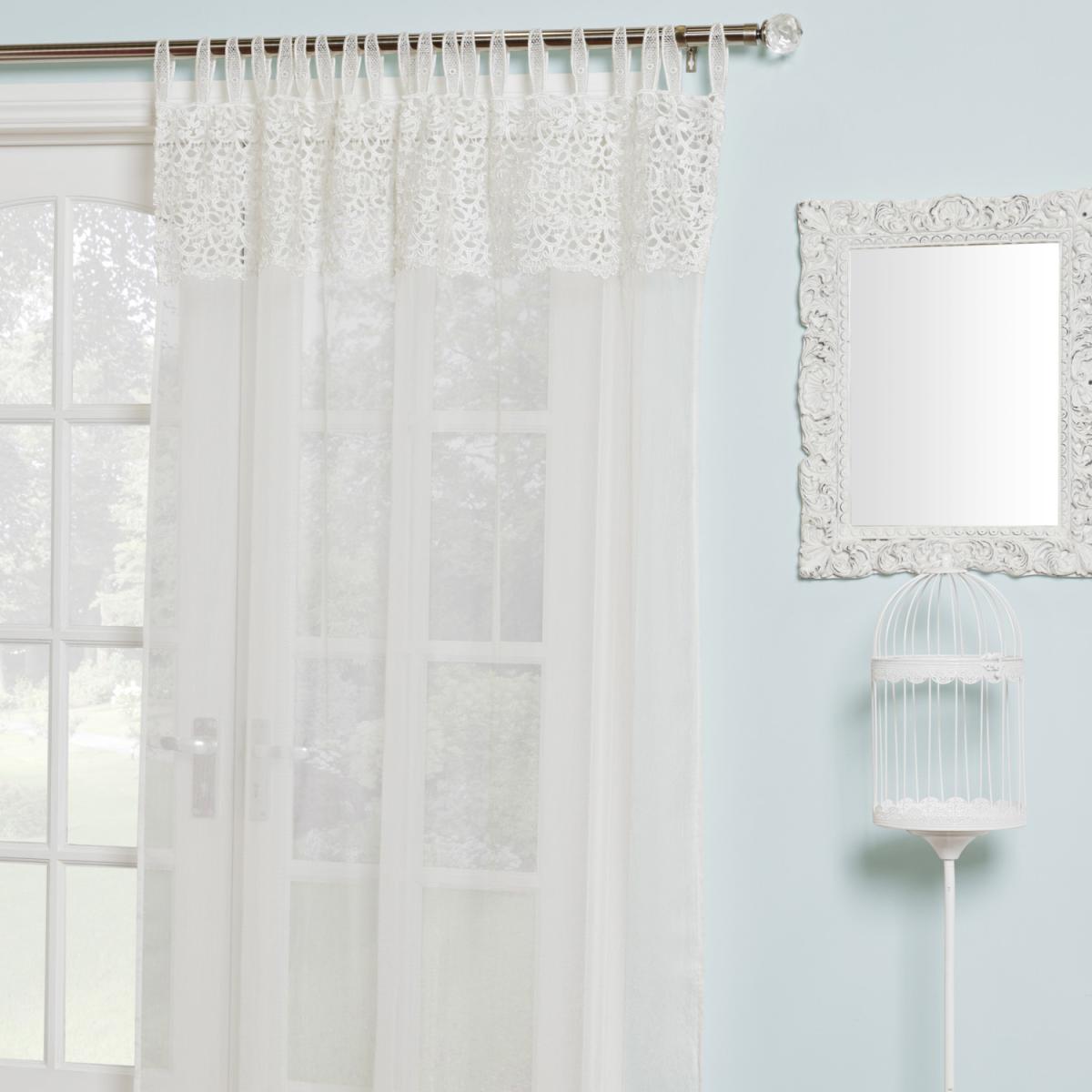 The Macrame Voile Curtain in demure cream is a great way to create some much needed privacy in your home as well as diffusing harsh and direct sunlight. This elegant curtain features a vintage inspired lace panel which sits atop the neutral and sheer voile curtain. This cream coloured curtain will complement a variety of home styling and the fabric table top header allows this voile curtain to be quickly and easily hung securely on any curtain pole around the house.