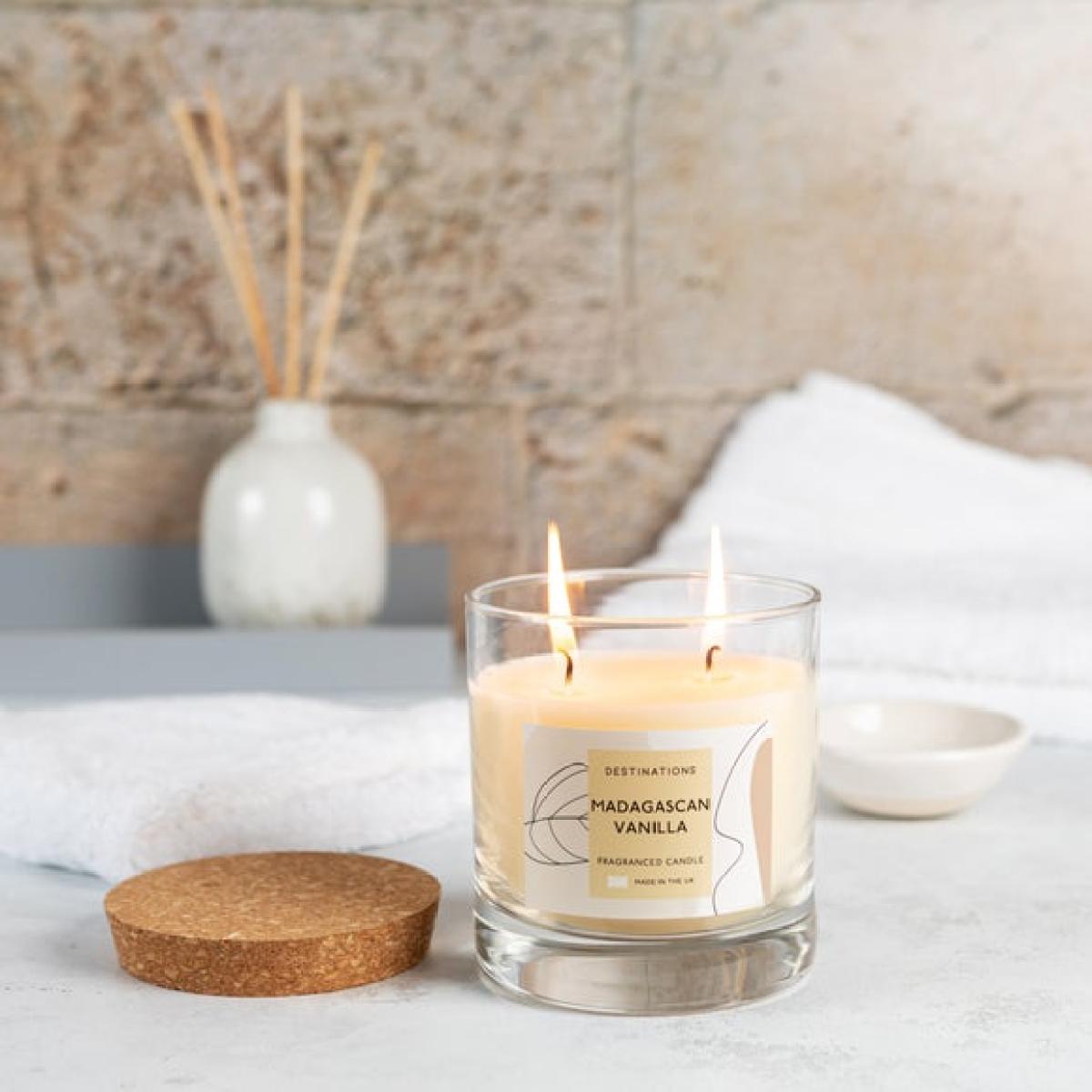 * Up to 38 hour burn time * Glass jar candle * Fresh Vanilla scent * Two wicks for an even burn Warm, comforting, and just the thing for winding down. This Madagascan Vanilla Candle blends creamy vanilla bean with soft musk, tonka, and a delicate hint of lily. Housed in a stylish glass jar with lid, it looks as good as it smells. With two wicks, you’ll get an even burn every time - no tunnelling here. It’s made to give you up to 38 hours of beautifully balanced fragrance - ideal for adding a little calm to your everyday.