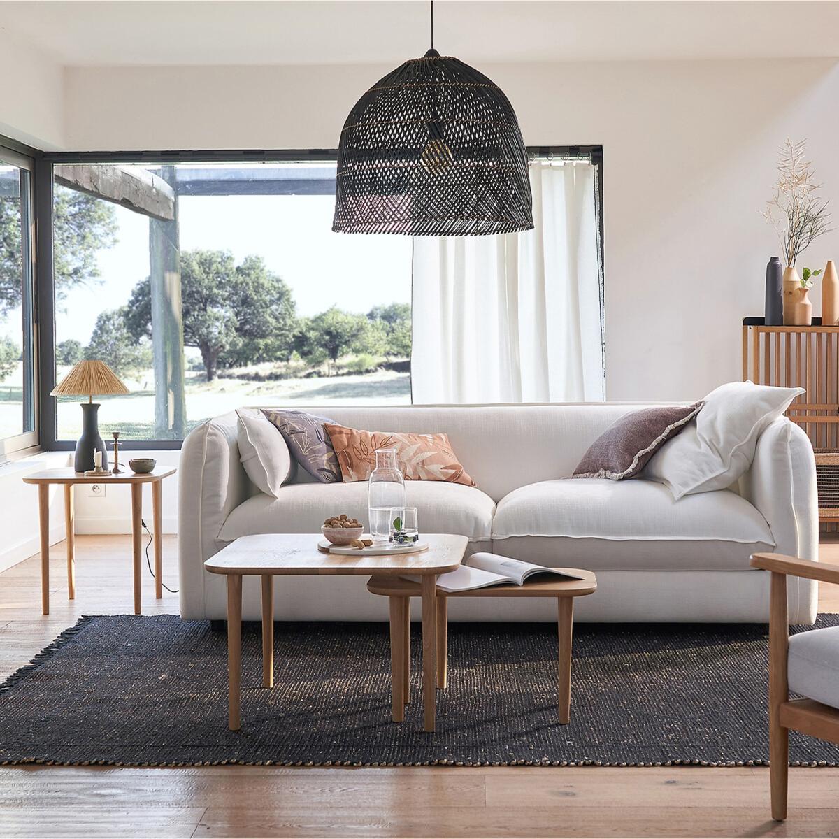 I love this table lamp for its blend of natural textures and modern design. The ceramic base offers a sleek, understated look, while the raffia shade introduces warmth and texture, making it versatile enough for a variety of interiors. It works particularly well in coastal, boho, or Scandi-inspired schemes where organic materials are key. For styling, consider placing it on a side table or console with neutral or earthy tones to enhance its natural vibe. Practical tip: pair it with a soft, warm bulb to highlight the raffia’s fibres and create a cosy atmosphere in your living space or bedroom.