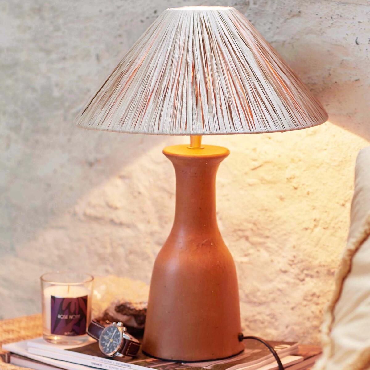 Striking and natural. With its terracotta base and raffia lampshade, Madago is 100% aligned with the bohemian trend.