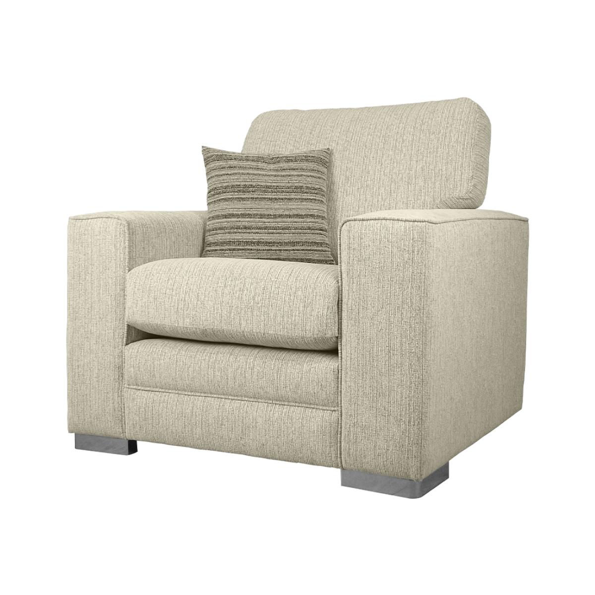 The Madden has both modern and classic design features to suit any home. With clean lines, comfortable cushioning and squared chrome feet, the Madden is complete with soft textured fabric upholstery.