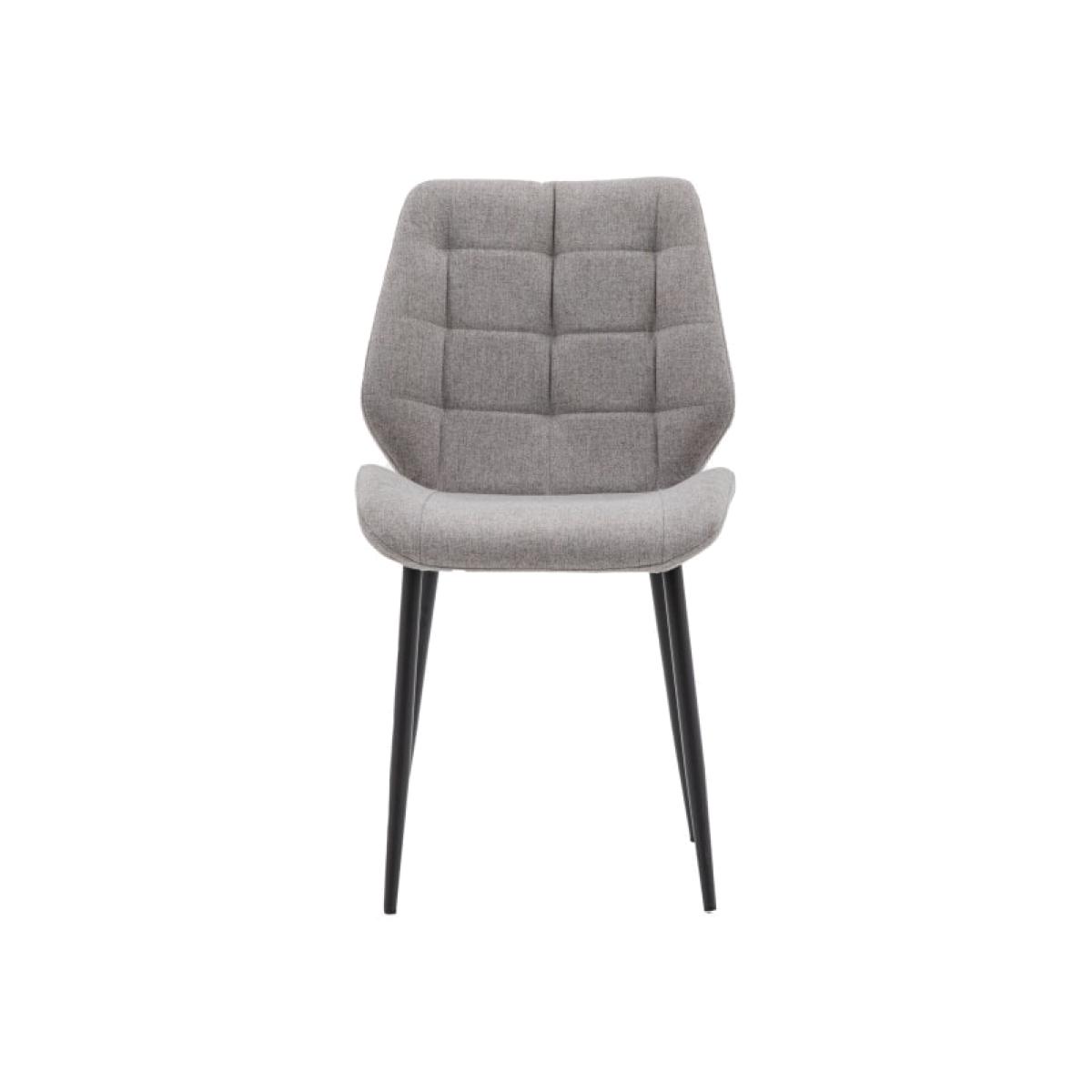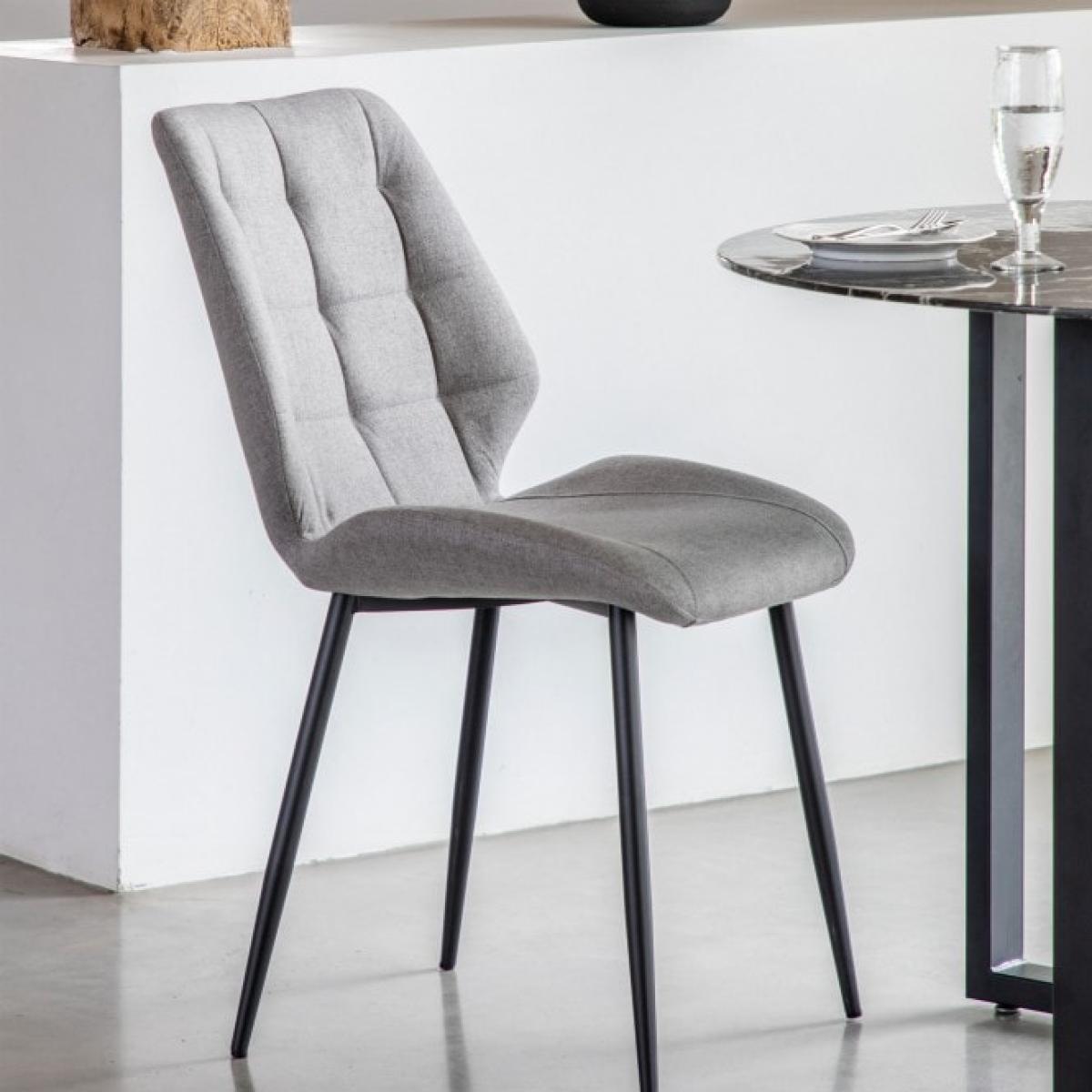 Set of 2 Mid-Century inspired modern dining chairs. These versatile chairs will make a stand out addition to your dining space or home office. The shaped chair back and curved seat are upholstered in grey with extra stitch detailing for a modern look. Material:Iron / Polyester / Plywood / Foam. Colour/Finish: Grey.