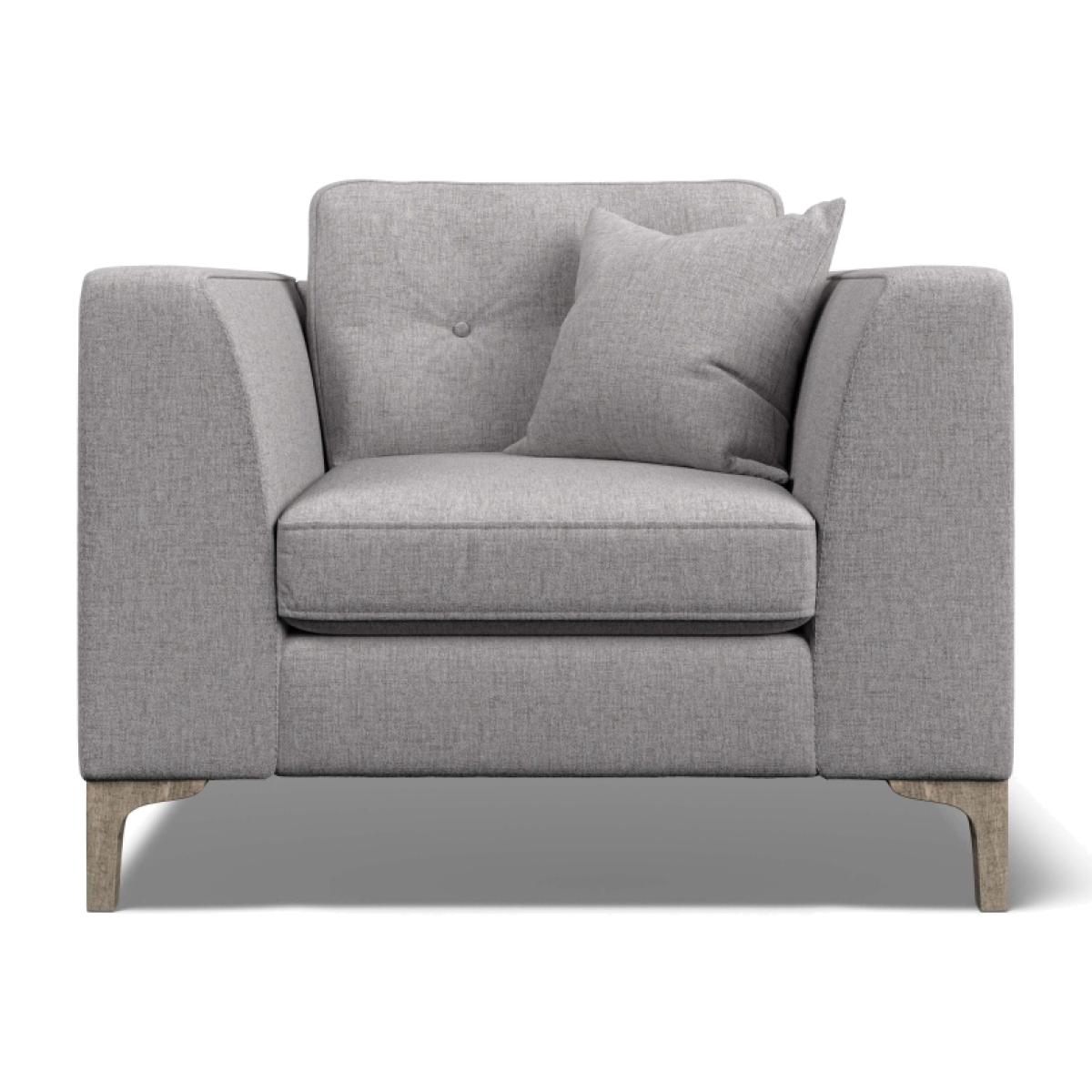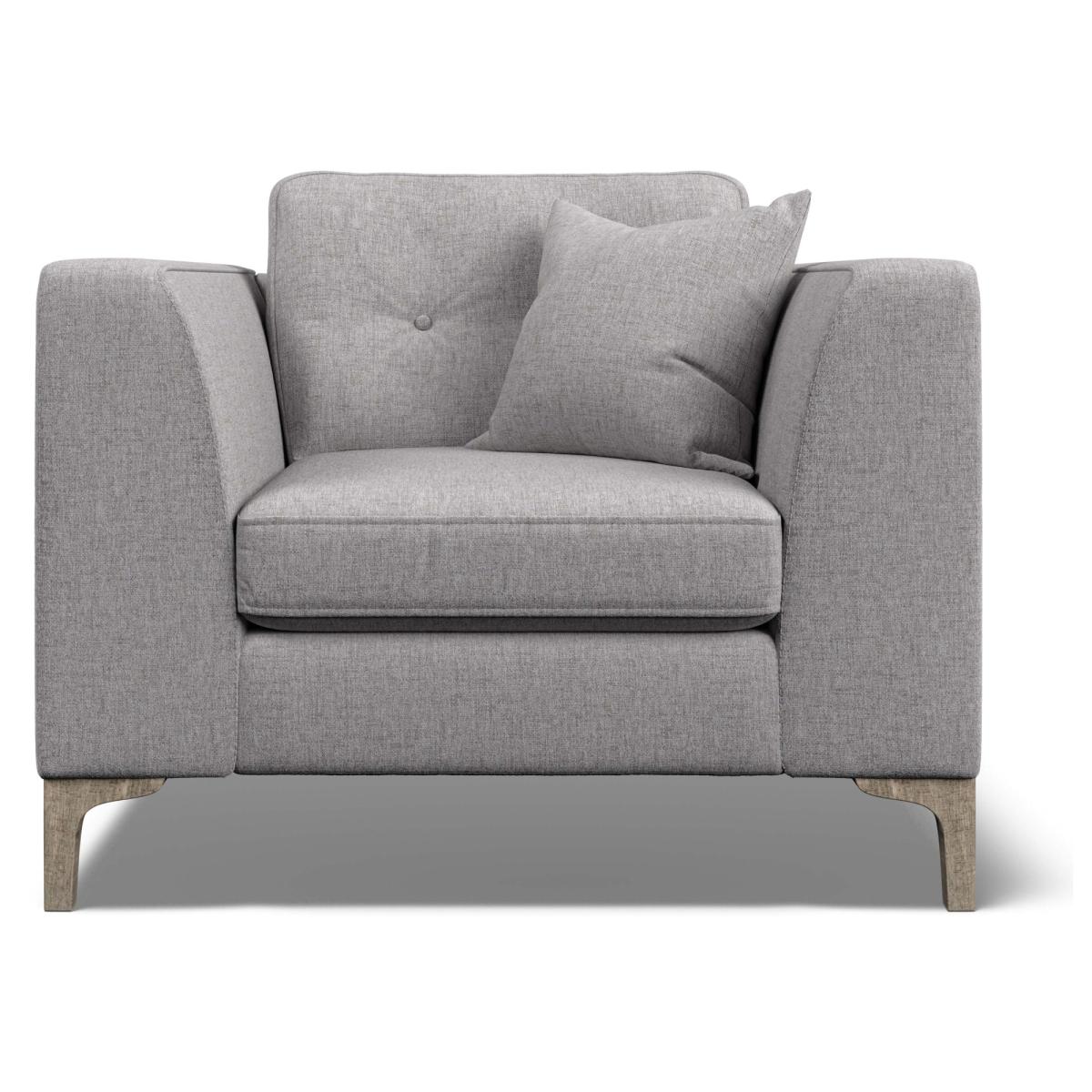 Sink into the understated elegance of the Maddie Fabric Armchair, a perfect harmony of form, function, and comfort. Designed for those who appreciate clean lines and cozy moments, the Mateo pairs a timeless silhouette with contemporary flair. Upholstered in a soft, textured fabric, its tailored finish adds a touch of sophistication to any living space. The generously cushioned seat and gently angled backrest invite you to relax, while the subtly flared arms provide just the right amount of support. Sturdy, solid wood legs ground the design with a warm, natural touch, ensuring durability for everyday lounging. Whether it’s your favorite reading nook, a stylish accent in your bedroom, or the coziest seat in your living room, the Mateo is made to fit seamlessly into your space—and your life. Features: Hardwood Frame Sustanably Sourced in the UK by skilled craftsmen. The bounce back foam seat cushions are ultra-low maintenance and offer a comfortable cocoon of support. Soft, durable upholstery in a modern, textured weave Neutral tones that complement a variety of decor styles Scatters contain 100% responsibly sourced duck feathers Timeless design to suit any décor Built for both relaxation and entertaining Choose Walnut or Weathered Oak Wood Feet Dimensions: Height: 86cm Width: 103cm Depth: 100cm All screens vary in colour reproduction and whilst every effort has been made to display the colour as accurately as possible it is for guidance only.