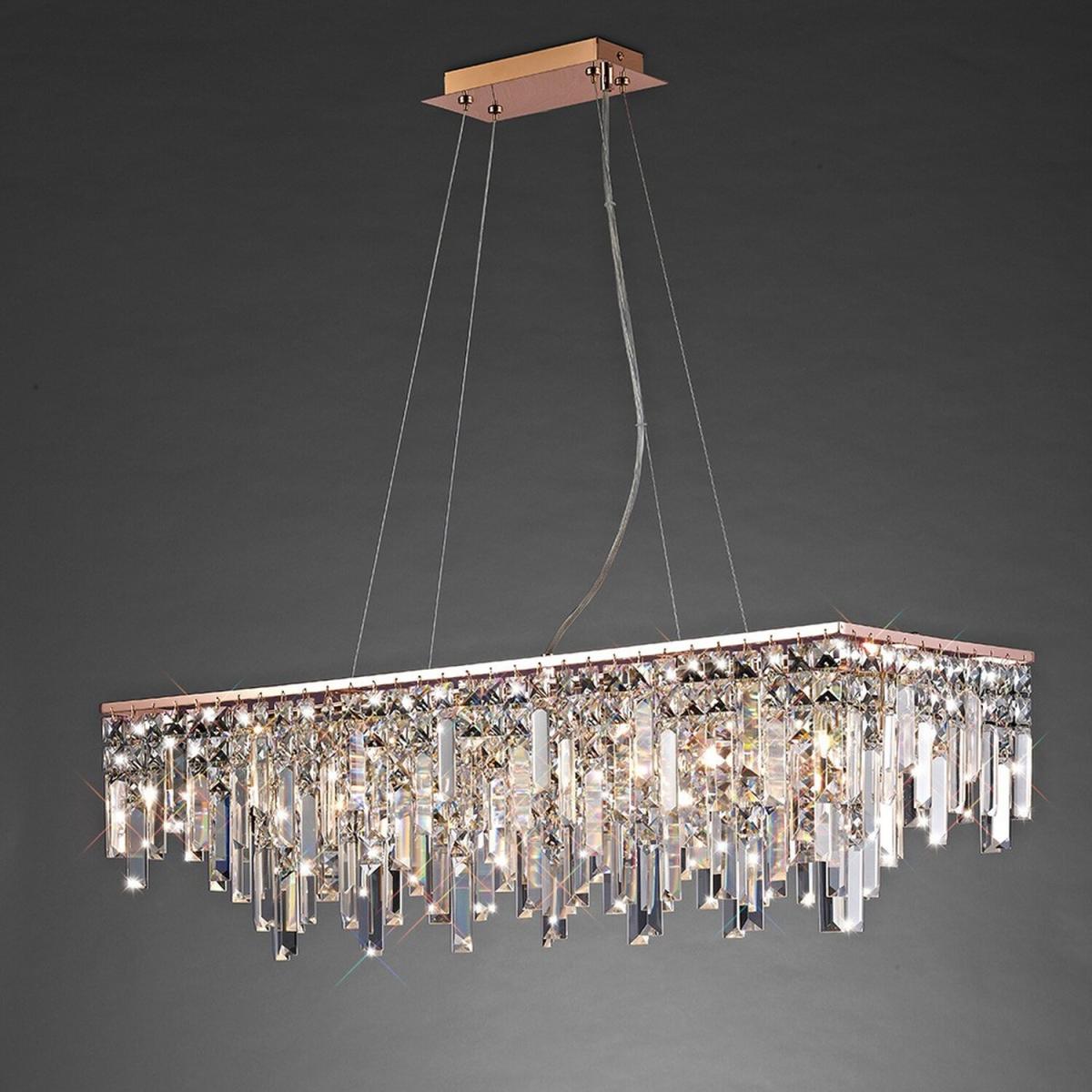 Maddison Ceiling Pendant Rectangular 6 Light G9 Rose Gold, Crystal - Rose Gold