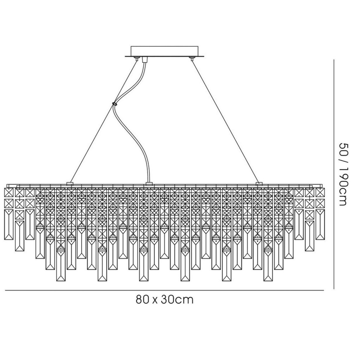 A thorough collection of fully loaded lighting fixtures utilizing square and rectangular crystals. Carefully calculated strands of crystal are hung in a systematic manner to deliver an outstanding effect. The framework has been kept to the bare minimum to create this spectacular range with outstanding results. This also makes the range universal because of its neutral appearance available in two colour finishes.