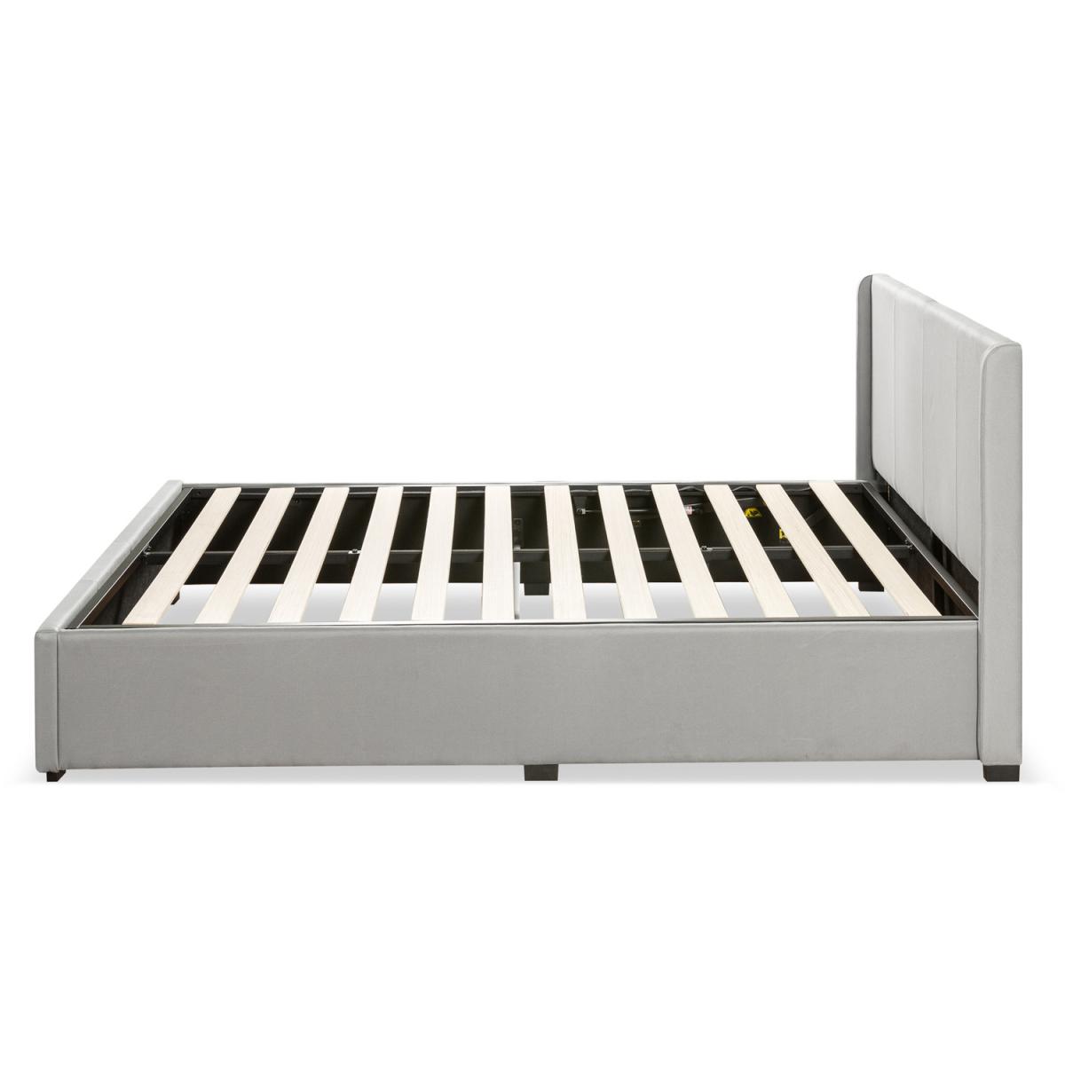 Add some extra storage space to your home or flat with the Maddon Ottoman Gas Lift Upholstered Bed Frame. This clever design is built with a hydraulic mechanism for easily lifting the mattress platform without the need to move the mattress itself. Access the full range of under-bed space for storing your linens, pillows, luggage, and clothes. Wrapped in a stylish light grey fabric and foam, this charming bed frame complements a variety of decorating styles. Also, with all the tools and step-by-step instructions, your new bed can be assembled in under an hour with the help of a friend. It even comes complete with a 5-year worry-free warranty.