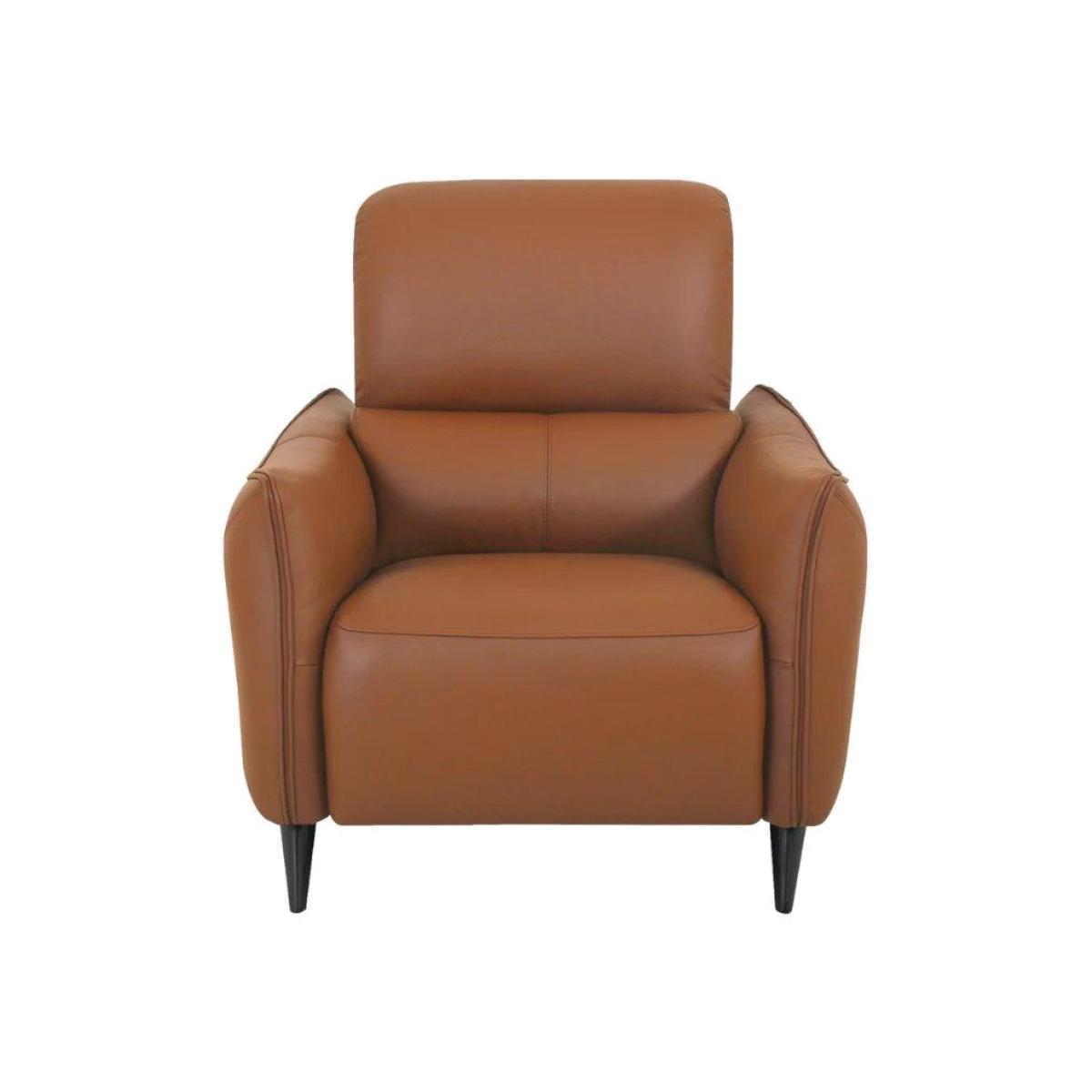 It may be an armchair but this leather power recliner chair from Domicil really can be the main living room attraction. Cool modern style, exceptional sprung-seat comfort. Why you'll love it Leather power recliner armchair delivers larger-than-life style and comfort. Statement style with luxe cushioning, distinctive curved arms and gunmetal legs. Wall-away power recliner, sprung seat and a USB port for serious relaxation. Handcrafted for Furniture Village. This leather power recliner chair is part of the Domicil Maddox collection. What you need to know Medium comfort level. Seat suspension: no-sag spring. Seat cushioning: foam, inner coil. Back support: rubber webbing. Back cushioning: foam, inner coil. USB charging port is only available with the power recliner version of this armchair. Feet are removable. Please allow time for new recliners to ease. Minor gaps are necessary to ensure ease of recliner motion and may be exaggerated depending on floor type. Leather has unique marks and characteristics with variation in colour and texture. Leather softens with use. Smoothing the tops of leather cushions prevents signs of visual comfort. Please read our upholstery care guide for more advice.