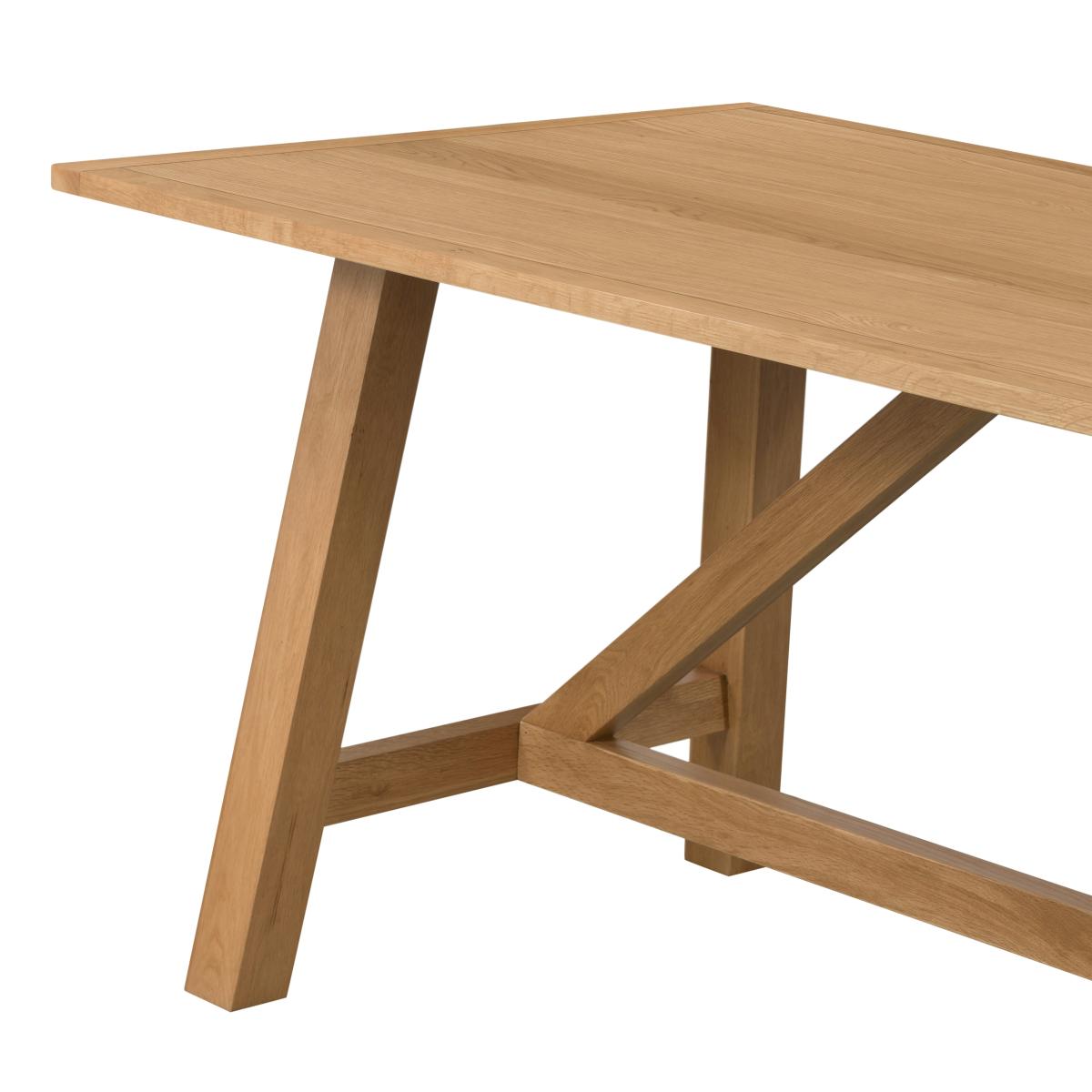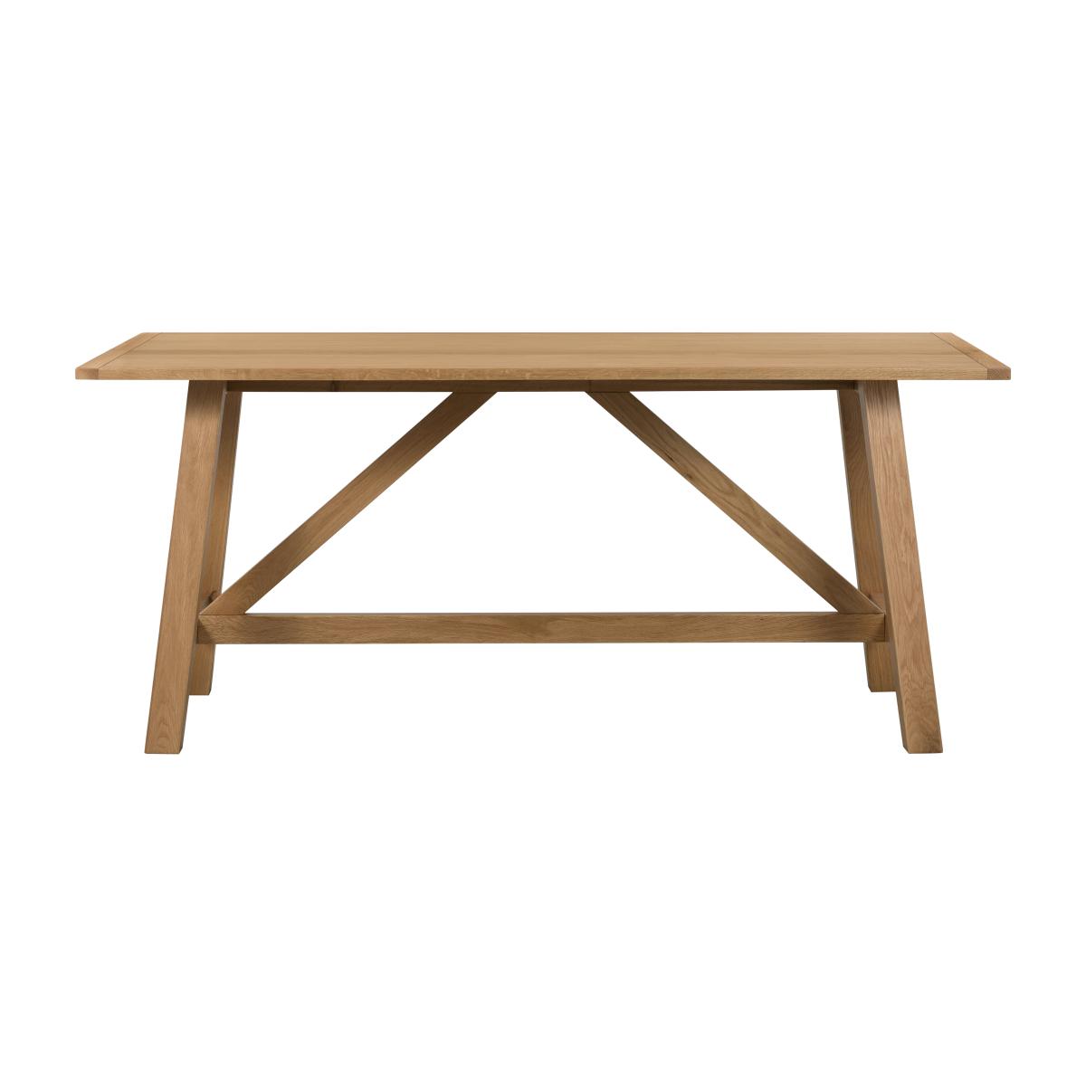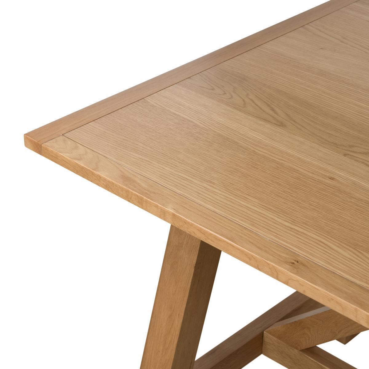 The stylish, classic look of the Maddox Trestle Dining Table has been beautifully crafted from solid oak and oak veneers, designed with a sleek and stunning design with cross legged base for some rustic charm, this dining table is sure to be a favourite in the home. Whether you're enjoying a meal with the family or having a lavish dinner party with friends, this table is the perfect choice for a family or busy home.