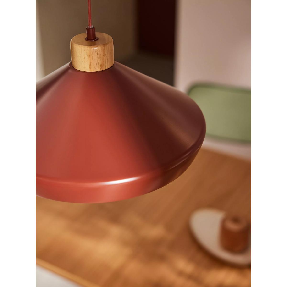 I love this ceiling light for its bold splash of colour and contemporary design, making it a standout feature in many interiors. The bright red hue brings vibrancy and energy to spaces, making it ideal for modern kitchens, dining areas, or eclectic living rooms. It pairs well with minimalist decor by adding a pop of colour or can be combined with natural materials like wood and concrete for a Scandinavian-inspired look. Practical styling tips include hanging it over a dining table or kitchen island to create a focal point, and balancing the vivid shade with neutral textiles and walls to ensure it remains the centre of attention without overwhelming the space.