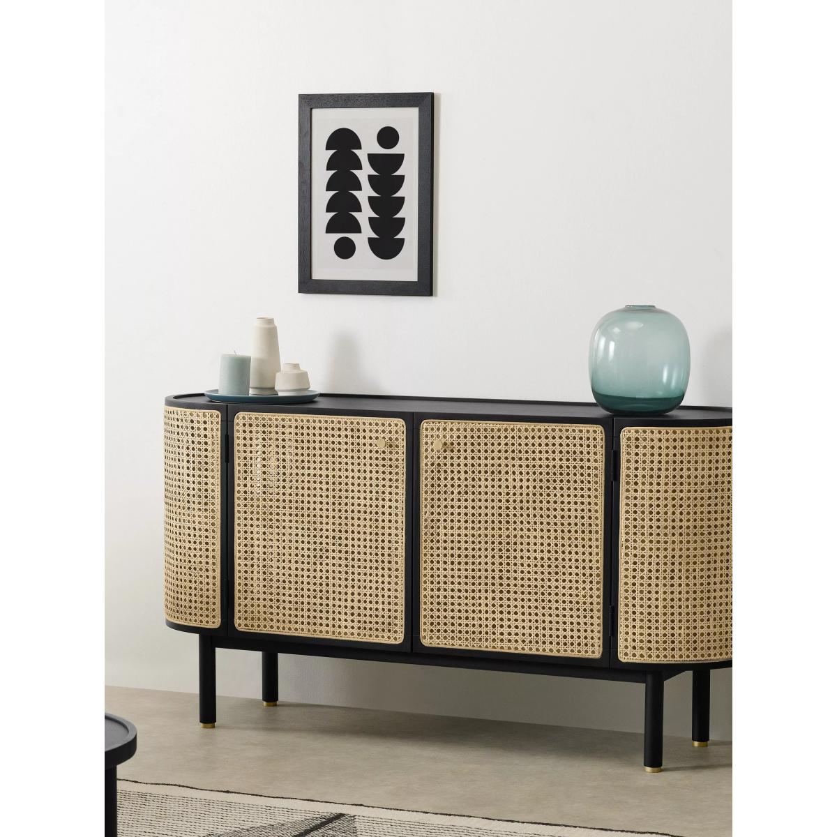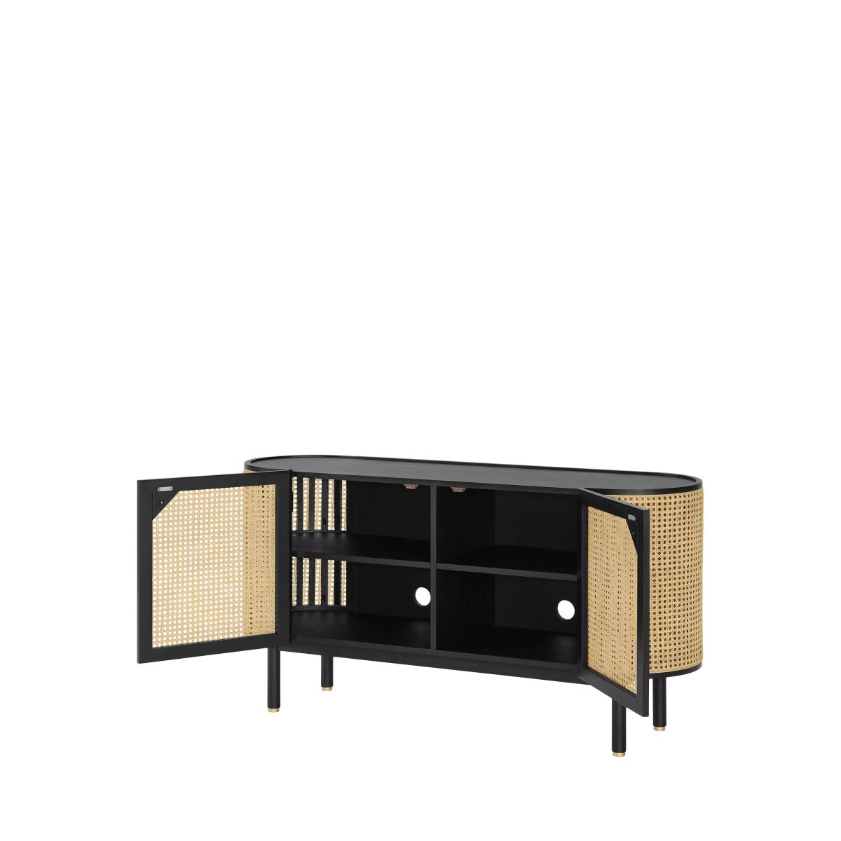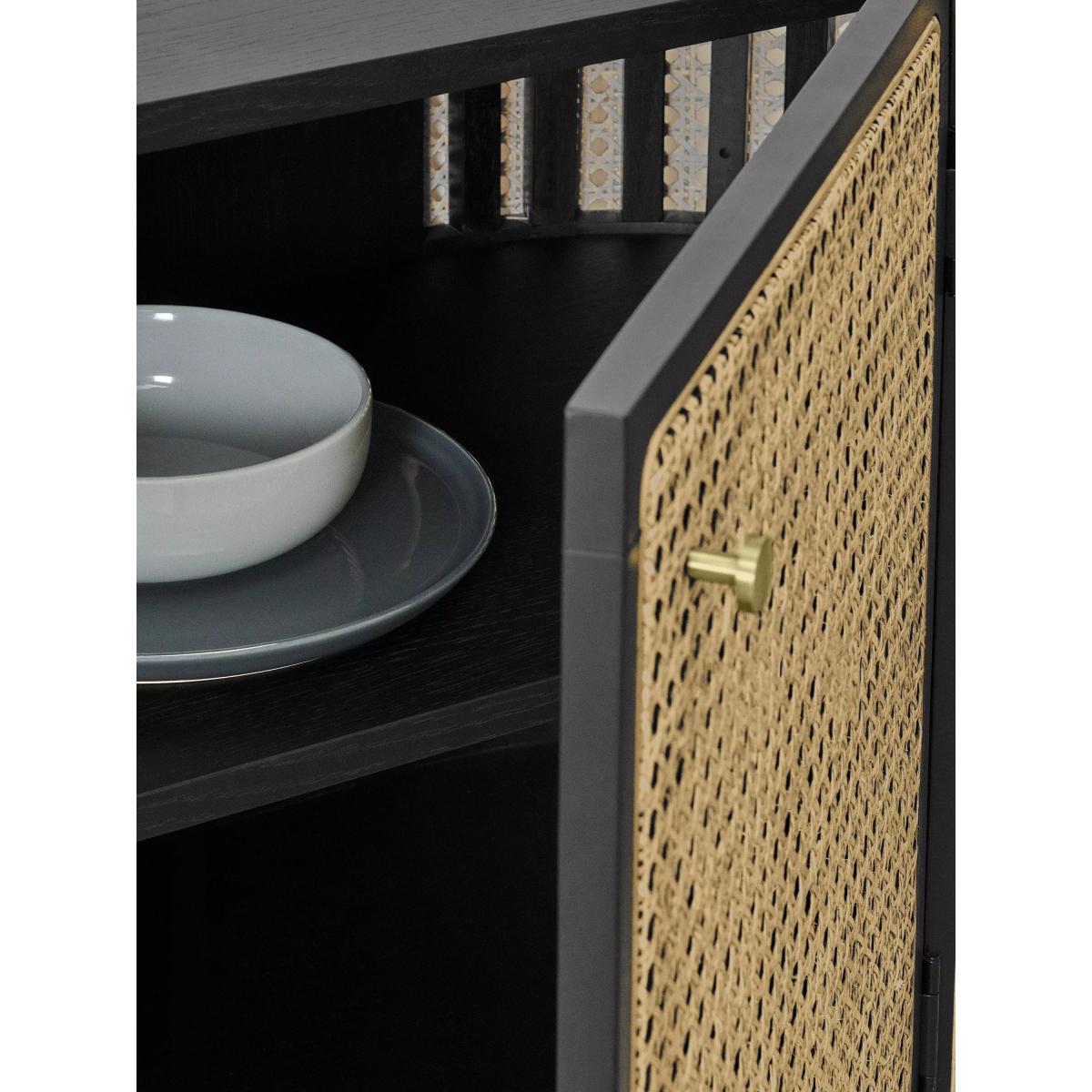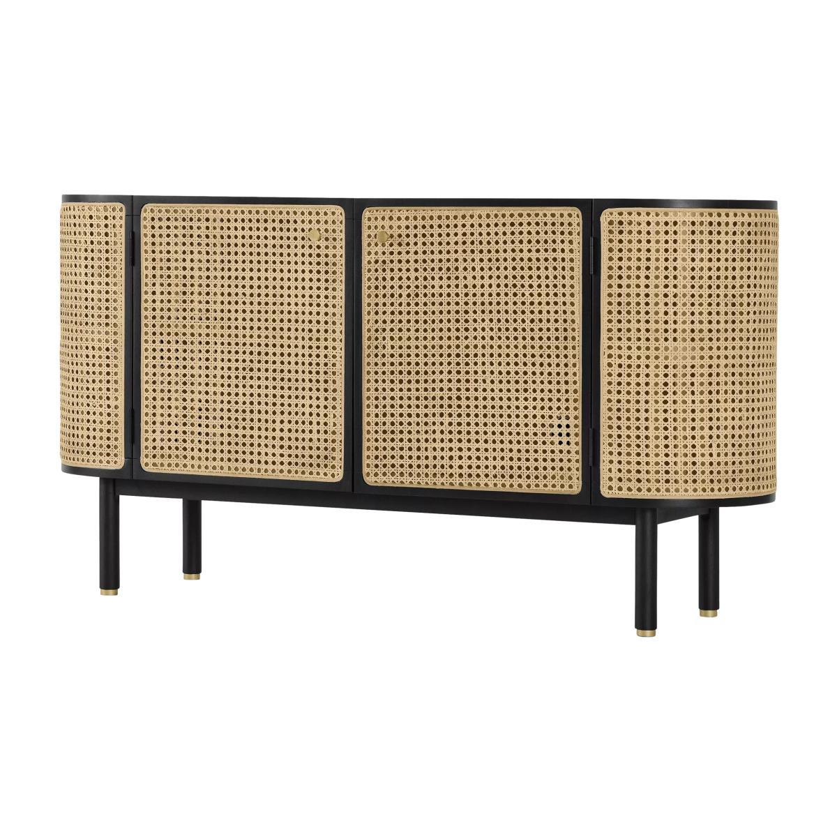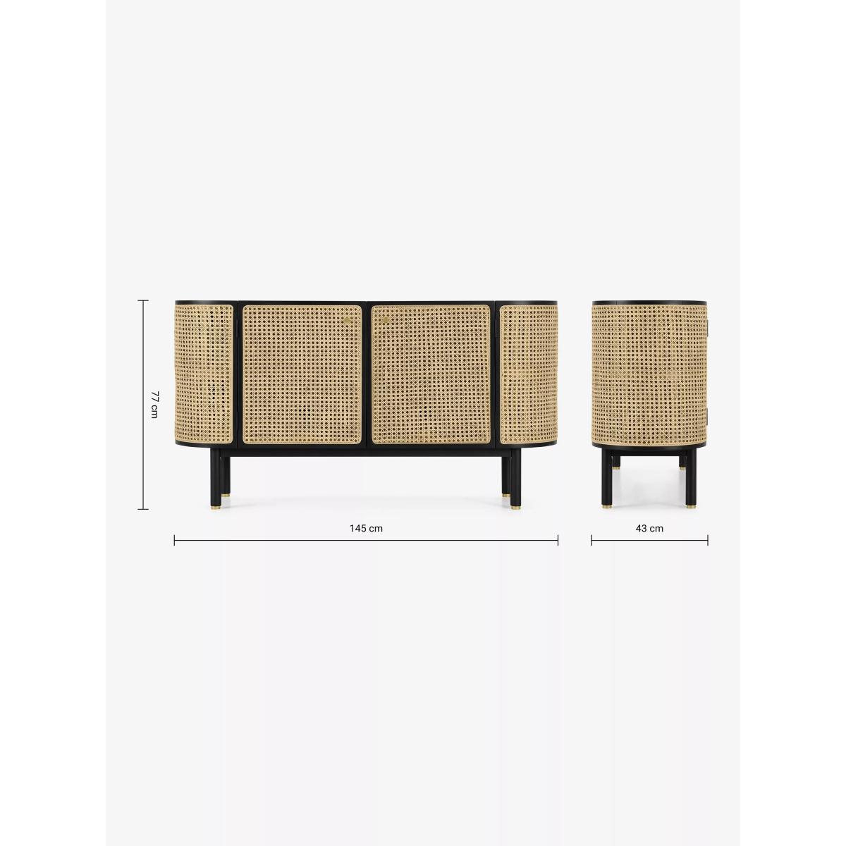 Cosy, Nordic opulence? Ankhara's into it. A refined combination of either oak or black, cane and brass, this sideboard's curved silhouette feels warm and welcoming, plus it'll tuck your clutter away nicely. Solid oak with brass-plated steel legs. Minimal assembly (legs). Want to see it first? You may want to see and get a feel for the furniture in one of our shops before ordering. We'll be able to tell you where the range you'd like to view is on display.