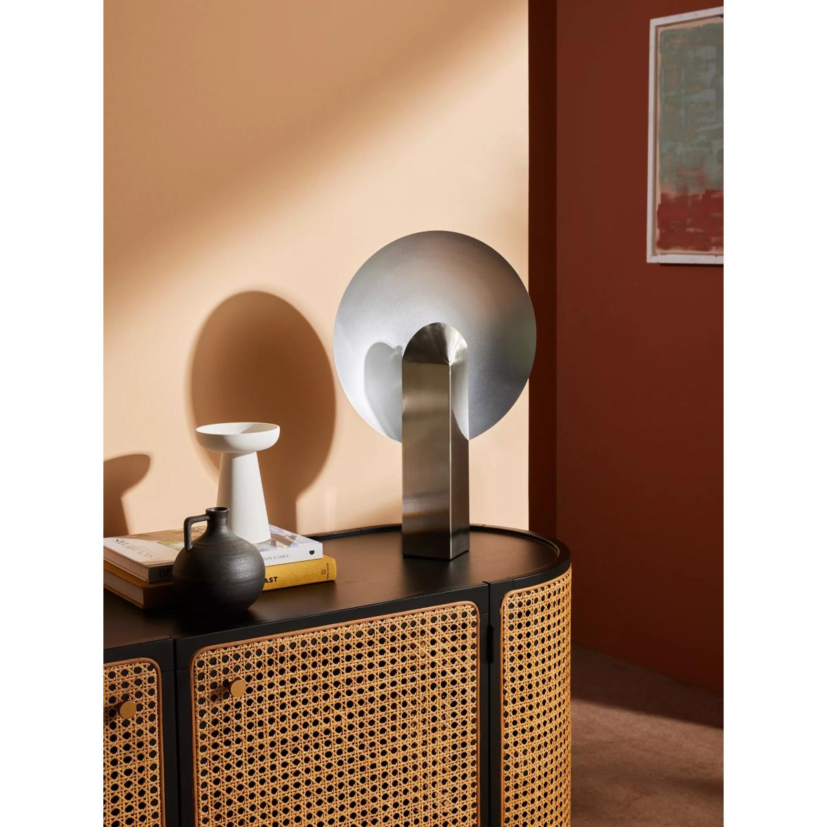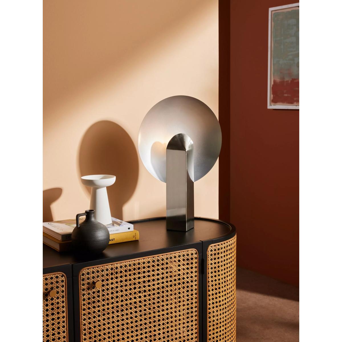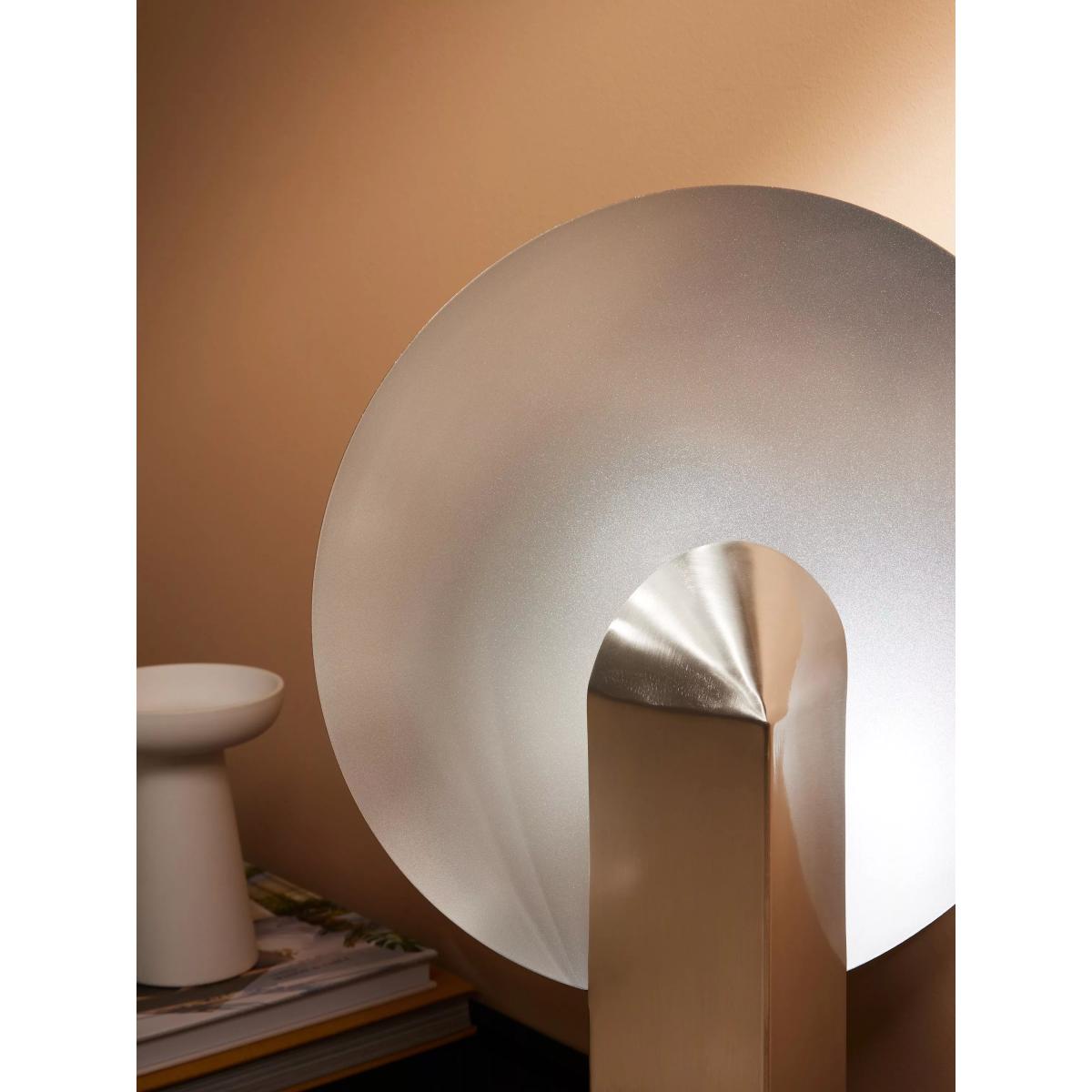 I love the Axel table lamp for its sleek, industrial look that adds a contemporary edge to various interiors. Its steel base combined with the warm glow of the circular light makes it versatile enough for both minimalist schemes and more eclectic spaces. It works particularly well in modern living rooms, workspaces, or bedside tables where a clean, sculptural statement is desired. For styling tips, consider pairing it with textured materials like concrete or wood to highlight its metallic finish, and keep surrounding accessories minimal to let the lamp stand out as a focal point. Its structured form also pairs beautifully with softer textiles and organic shapes, providing a nice visual balance.