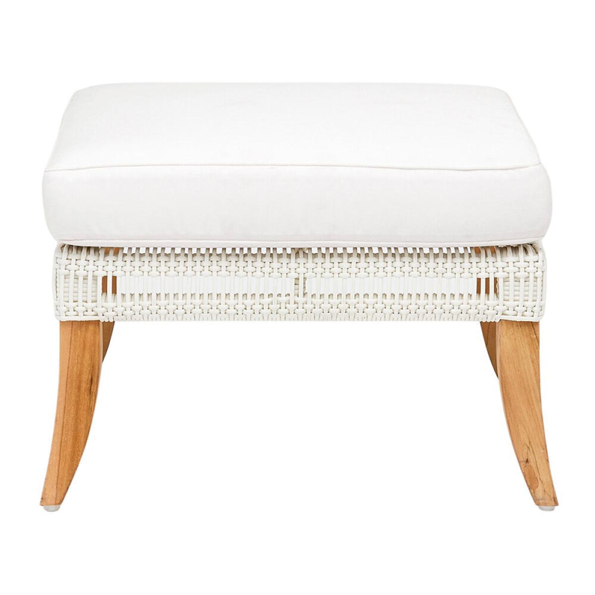 Get an extra surface with this Aurora ottoman from Made Goods. Handmade, it features a woven faux rattan body and has been topped with a neutral cushion. Make sure you pair with more furniture and accessories from Made Goods to complete the look.