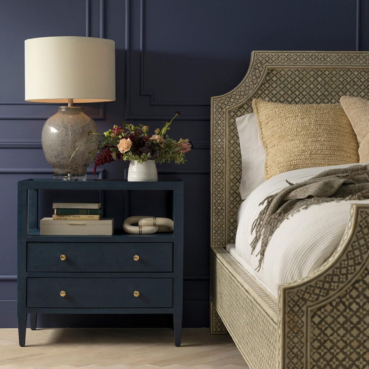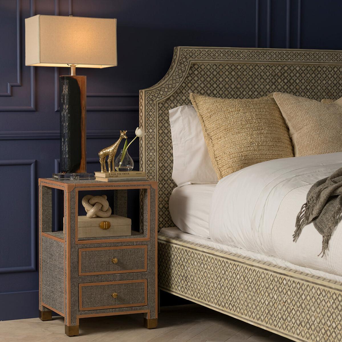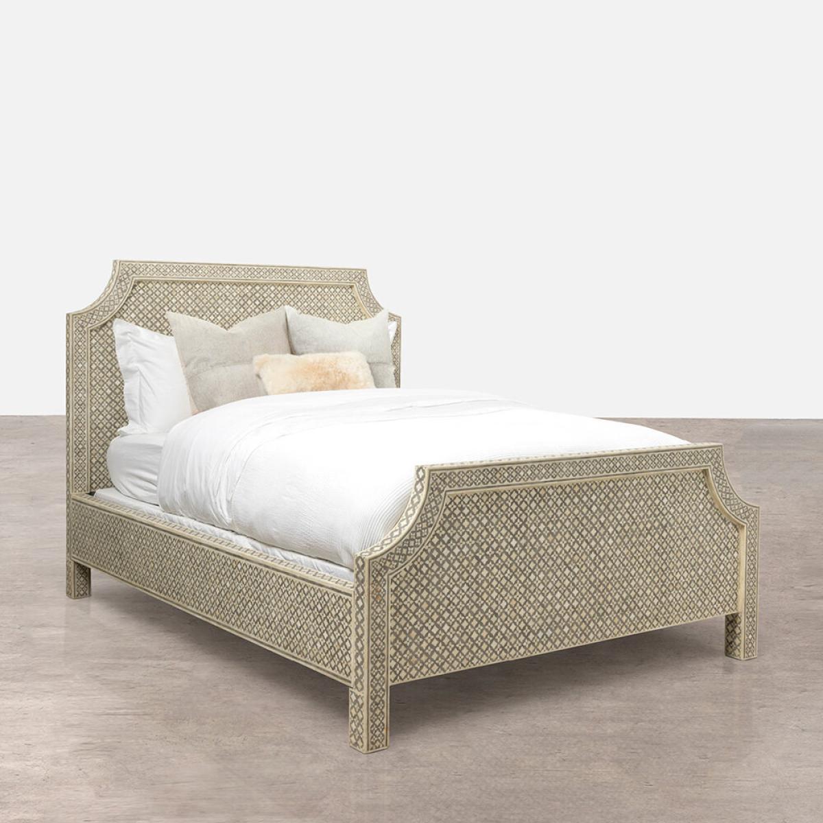 Transform your sleep space with this Dustin bed from Made Goods. Handcrafted by skilled artisans, this bed features inlaid bone in resin and is placed in an intricate pattern, a process taking three people a full week of work. With a large, scooped frame, it'll make a statement in any style of bedroom. Key features: * Material: resin, bone * Dimensions: H140xW165xD216cm * Hand-laid bone in resin * Intricate pattern * Scooped corners * Assembly required * Please note, due to the handmade nature each piece is unique