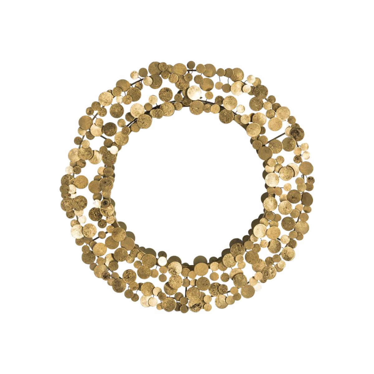 This Eline mirror from Made Goods is something to reflect on. Handmade from iron, this mirror features rows of hanging golden discs surrounded the round glass surface. Pair with more accessories from Made Goods to complete the look. Key features: * Material: iron, glass * Dimensions: Ø61cm * Gold coin design * Round shape * Please note, due to the handmade nature each piece is unique