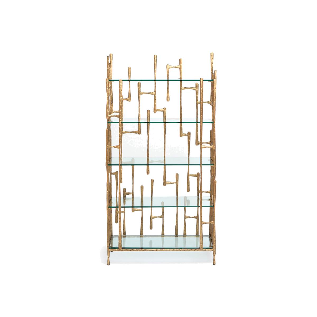 Well read? Keep your novels in style in this Grant bookcase from Made Goods. With a surreal silhouette, this iron bookcase features bold bars inspired by '60s textiles wrapping around the front of the glass shelves in an almost cage-like feel. Pair with more furniture and accessories from Made Goods to complete the look. Key features: * Material: iron, glass * Dimensions: H198xW99xD45.5cm * Cage design * Inspired by '60s textiles * Golden colour * Please note, due to the handmade nature each piece is unique