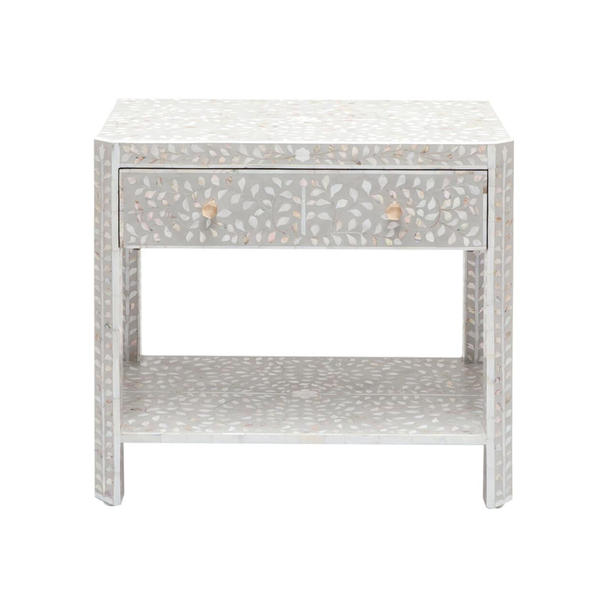 Complete your bedroom with this Hessa nightstand from Made Goods. Handmade, it features a mother of pearl inlay leaf pattern across its grey surface. Ultra-chic, it’ll complement any scheme and will make the perfect home for your bedside table and favourite book.