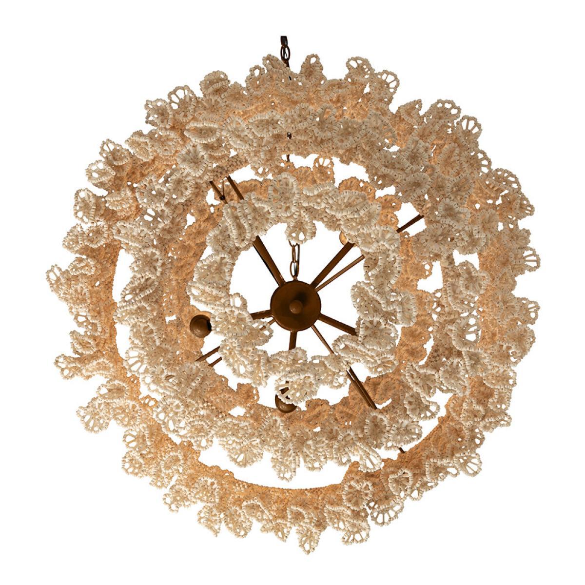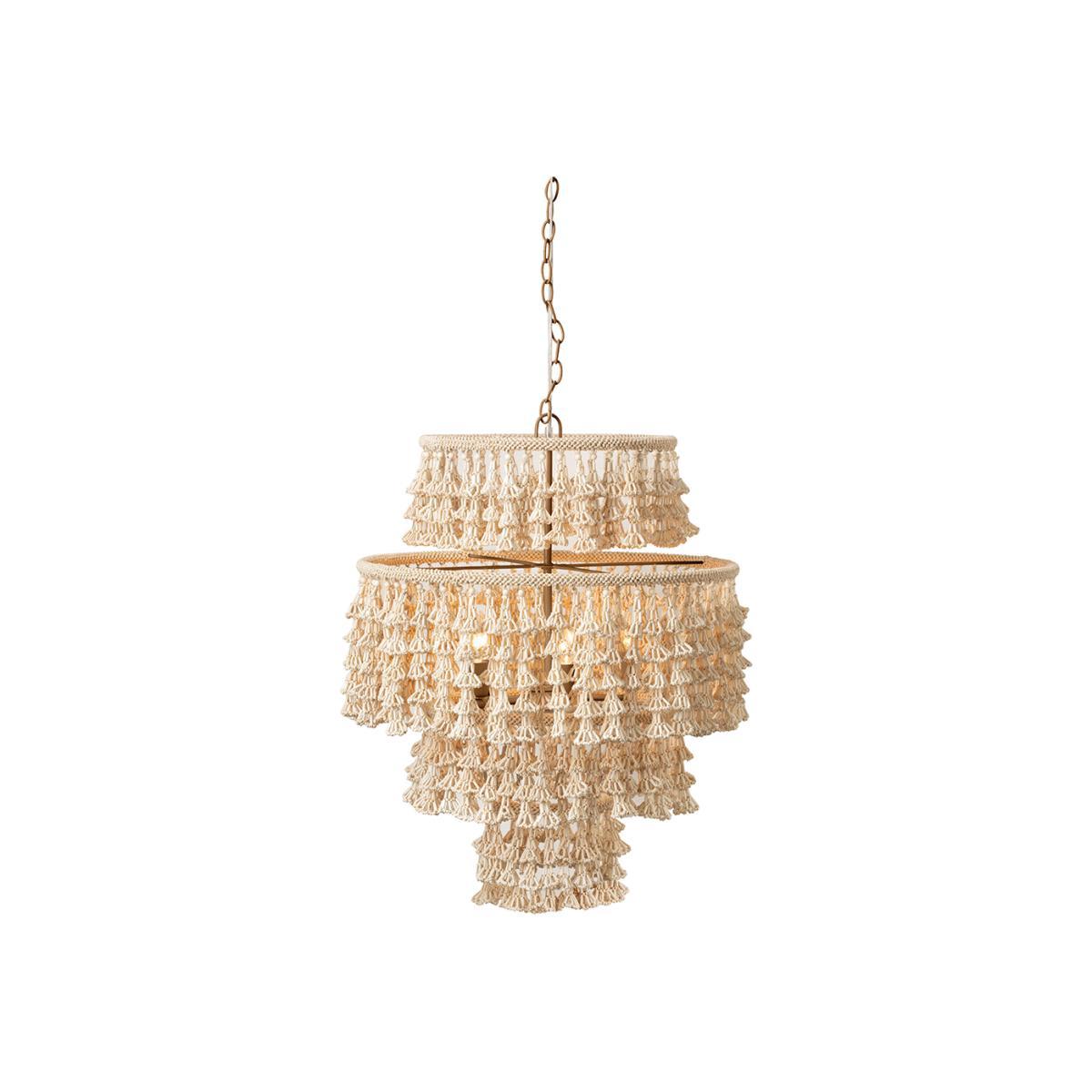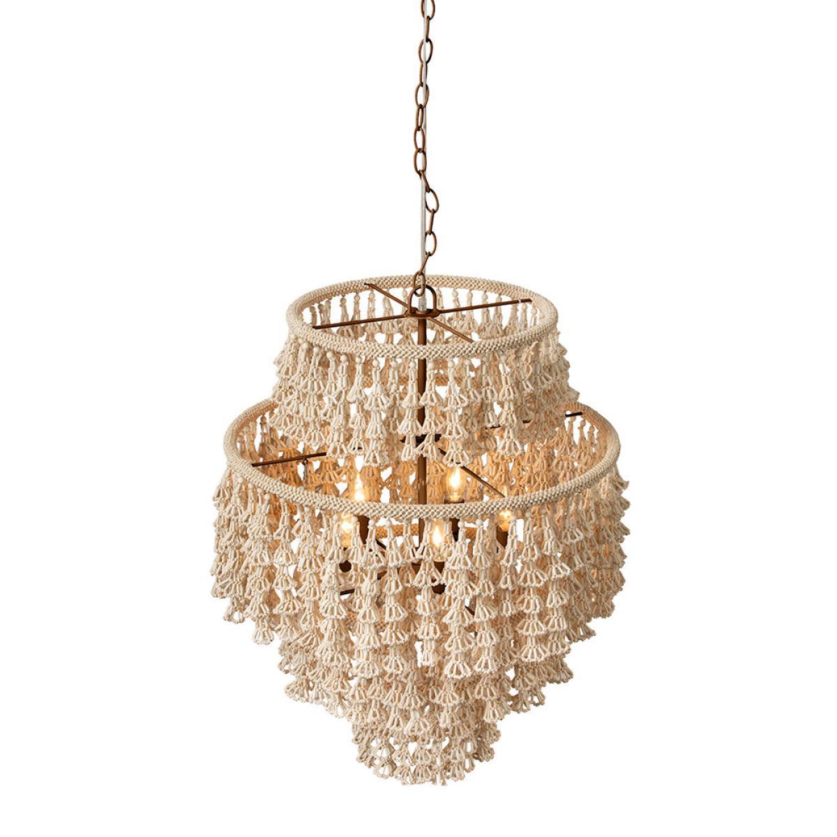 Transform your home with this Mackenzie chandelier from Made Goods. A classic shape, this chandelier natural coco beads, culled from bleached coconut shells, woven into chains of flowers and then hand-tied into concentric circles to form a swaying fringe. Each piece is completely one-of-a-kind and will add some unique style to any room of your home.