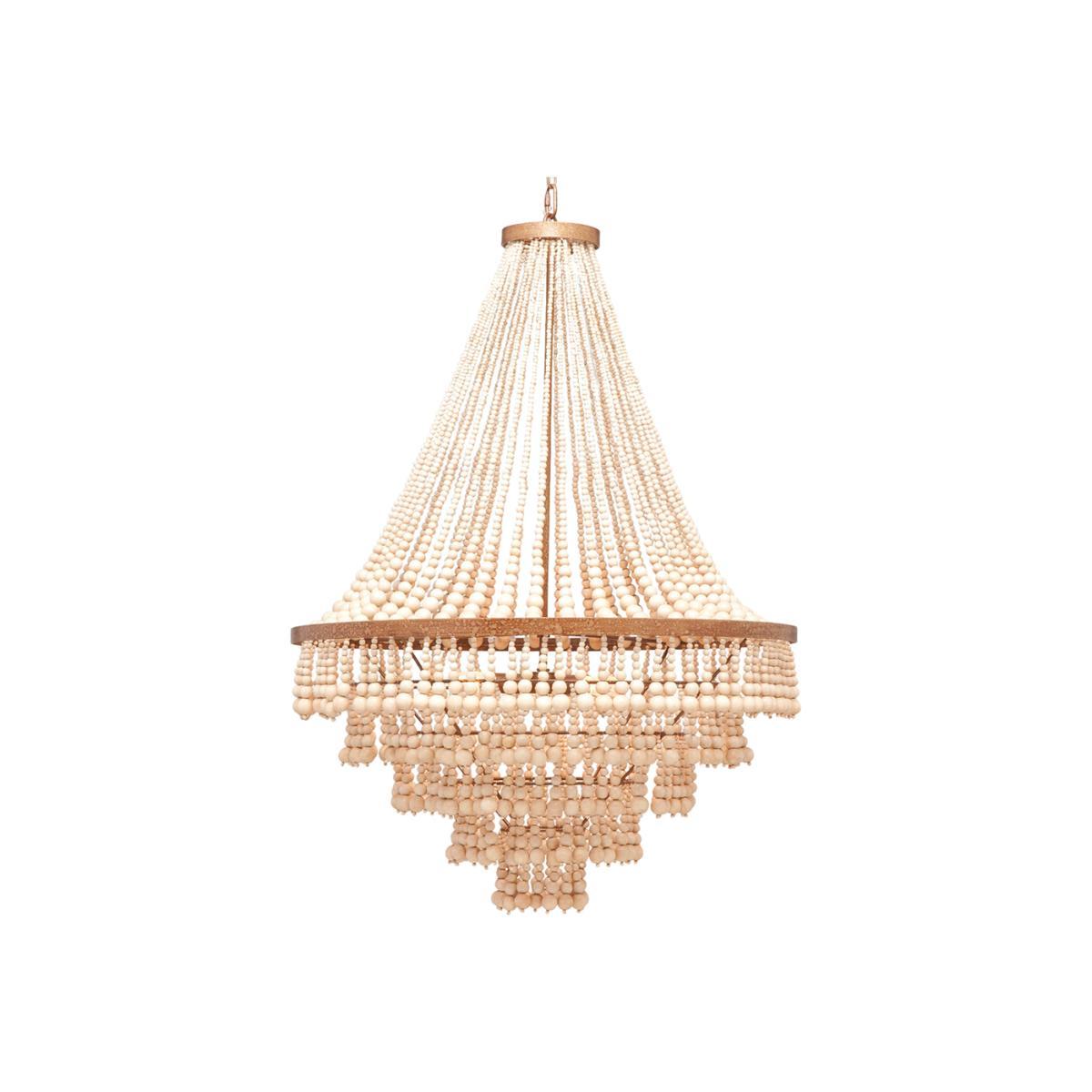 Transform your home with this Pia chandelier from Made Goods. A classic shape, this chandelier boasts hundreds of wooden beads in ten varying sizes. Each piece is completely one-of-a-kind and will add some organic style to any room of your home.