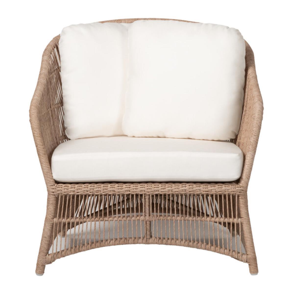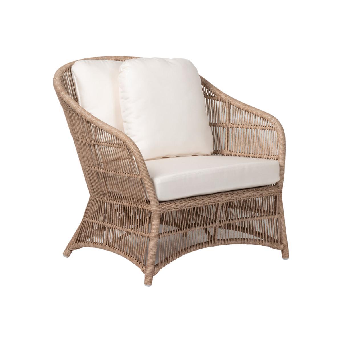 I love this outdoor lounge chair for its blend of natural texture and understated elegance. The rattan frame provides durability and a relaxed, organic vibe, making it suitable for both coastal and boho-inspired gardens or patios. Its white cushions add a touch of freshness and can be interchanged with colourful accessories for seasonal updates. To style it effectively, consider pairing it with neutral or pastel outdoor textiles and layered with cushions or throws for comfort. It works well as a statement piece in a garden seating area or as part of a larger outdoor lounge, offering a practical yet sophisticated way to elevate your outdoor space.