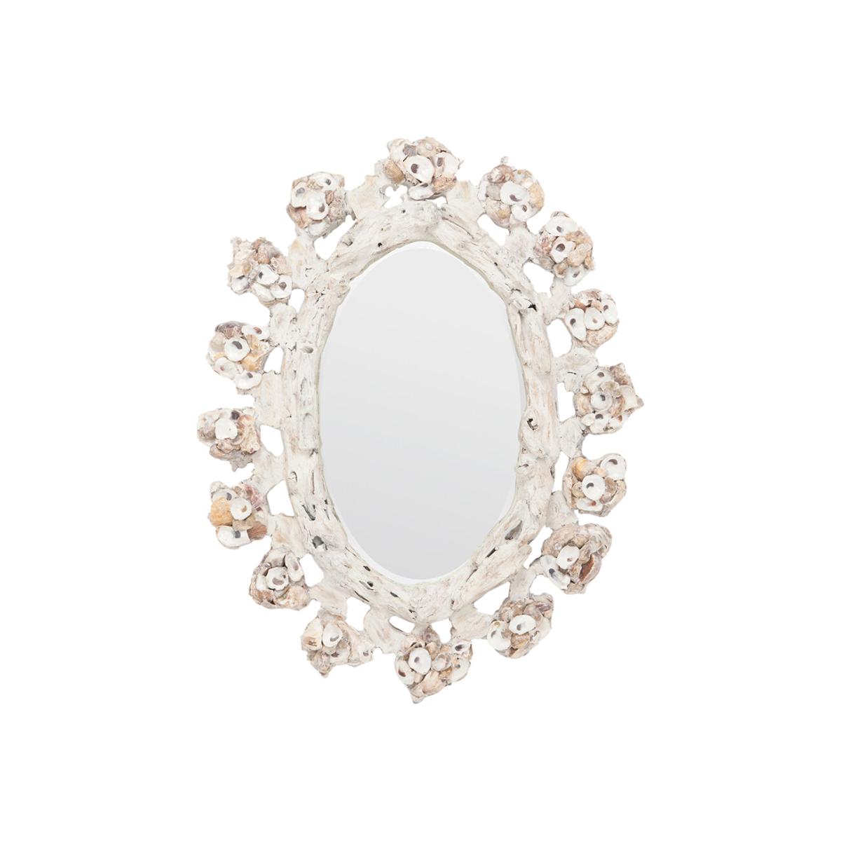 This Tallulah mirror from Made Goods will transform any wall. Handmade, this wooden mirror features real oyster shells and has been finished in a rustic white tone. Pair with more accessories from Made Goods to complete the look. Key features: * Material: wood, oyster shell, glass * Dimensions: H121xW96.5cm * Rustic design * White colour * Please note, due to the handmade nature and natural materials used, some differences may occur