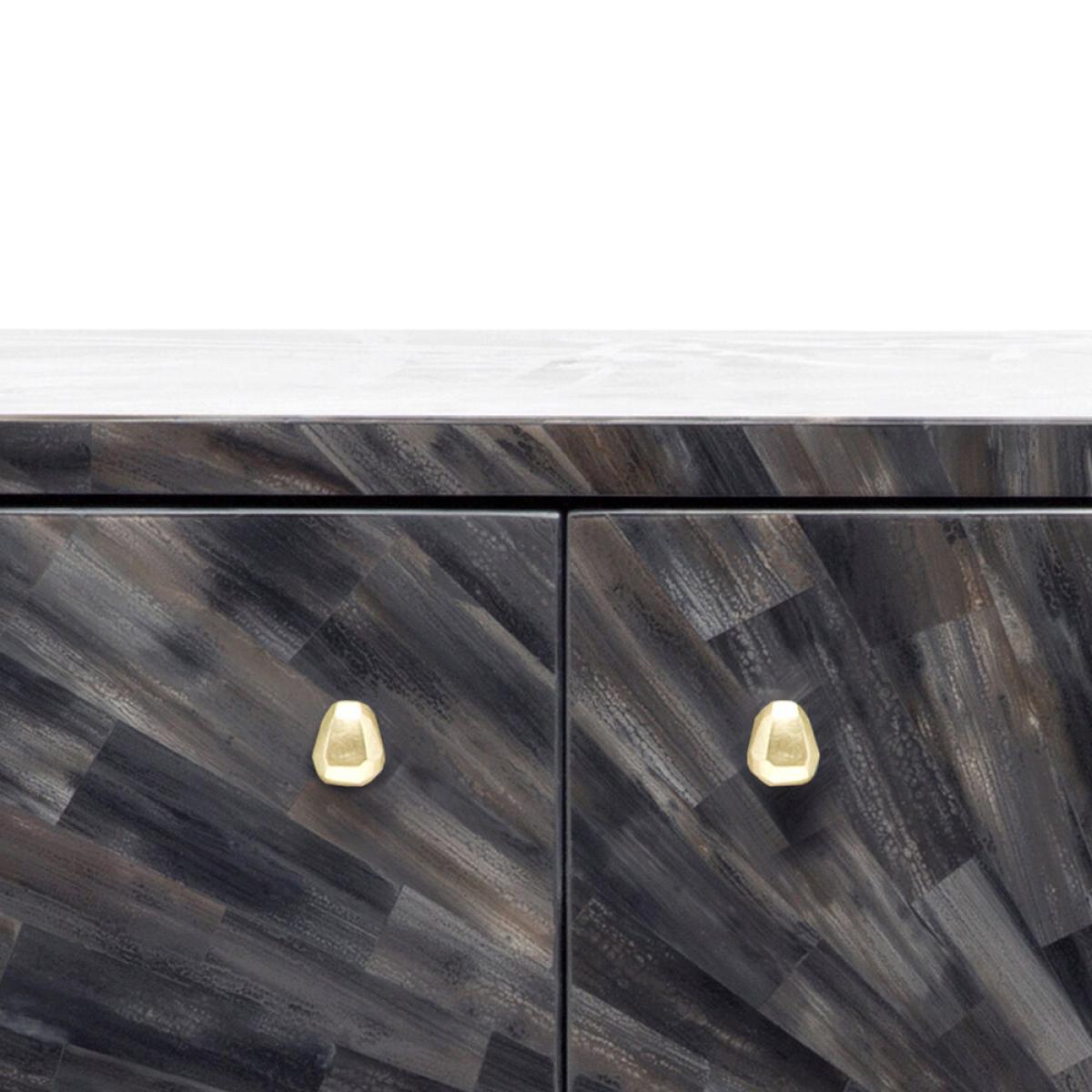 Add some statement style to your home with this Torion buffet from Made Goods. With three doors complete golden doorknobs, this faux horn buffet has been finished with a sunburst pattern. Pair with more furniture and accessories from Made Goods to complete the look.