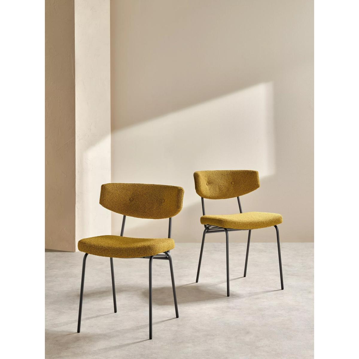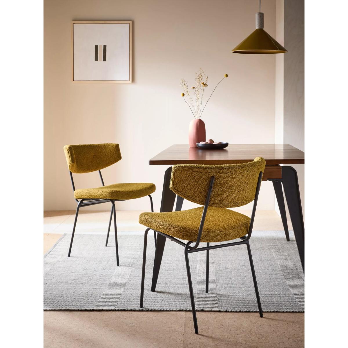 I love these Halina dining chairs in ochre for the way their boucle-style upholstery adds texture without overwhelming a space. The slim black metal legs keep the look light, making them a perfect match for Scandi, mid-century or eclectic dining areas. For a cohesive scheme, pair them with a natural oak or whitewashed table and layer in a neutral jute rug. If you want to introduce more colour, try deep teal or muted terracotta accents - think linens, ceramics or cushions - to balance the warmth of the ochre and keep the room feeling fresh.