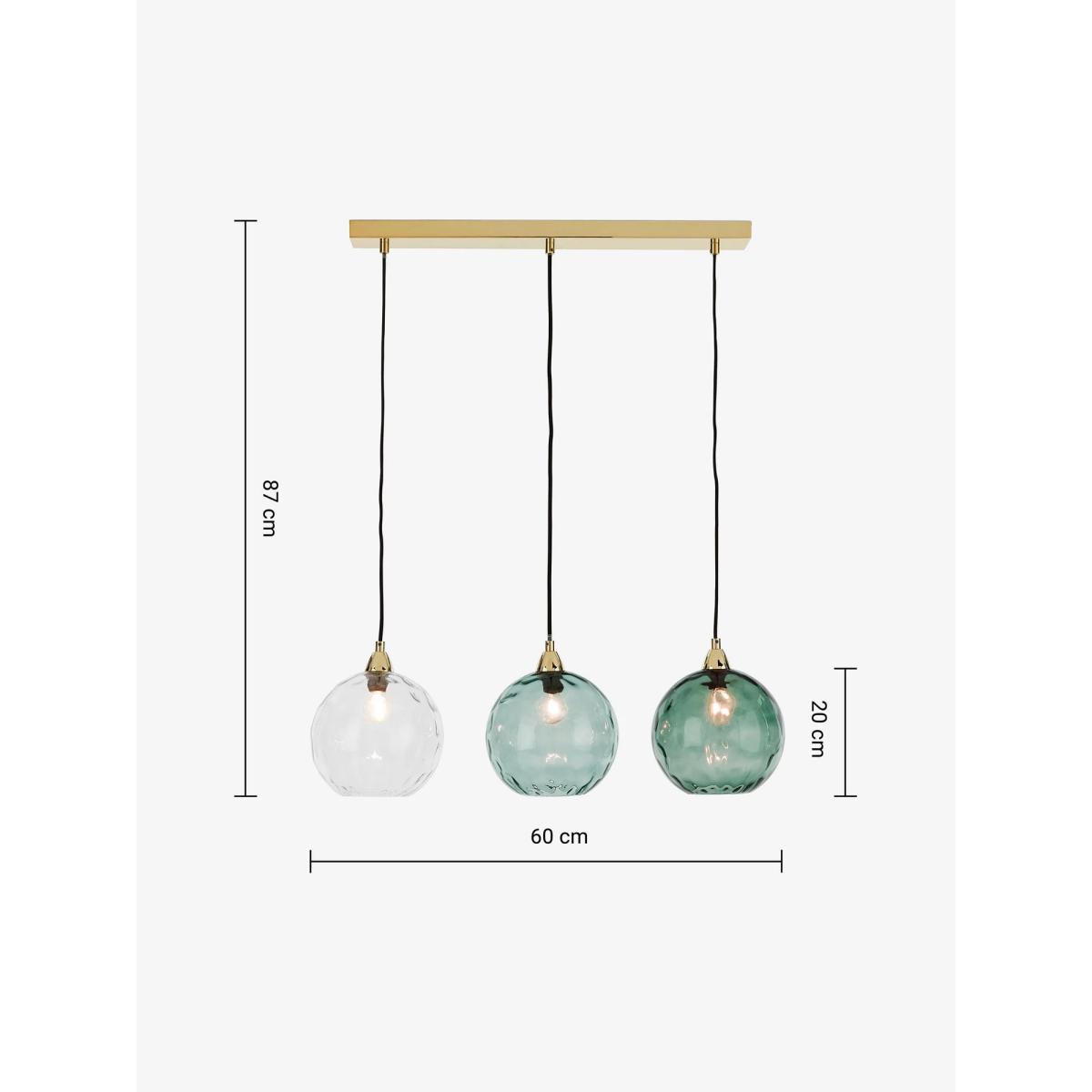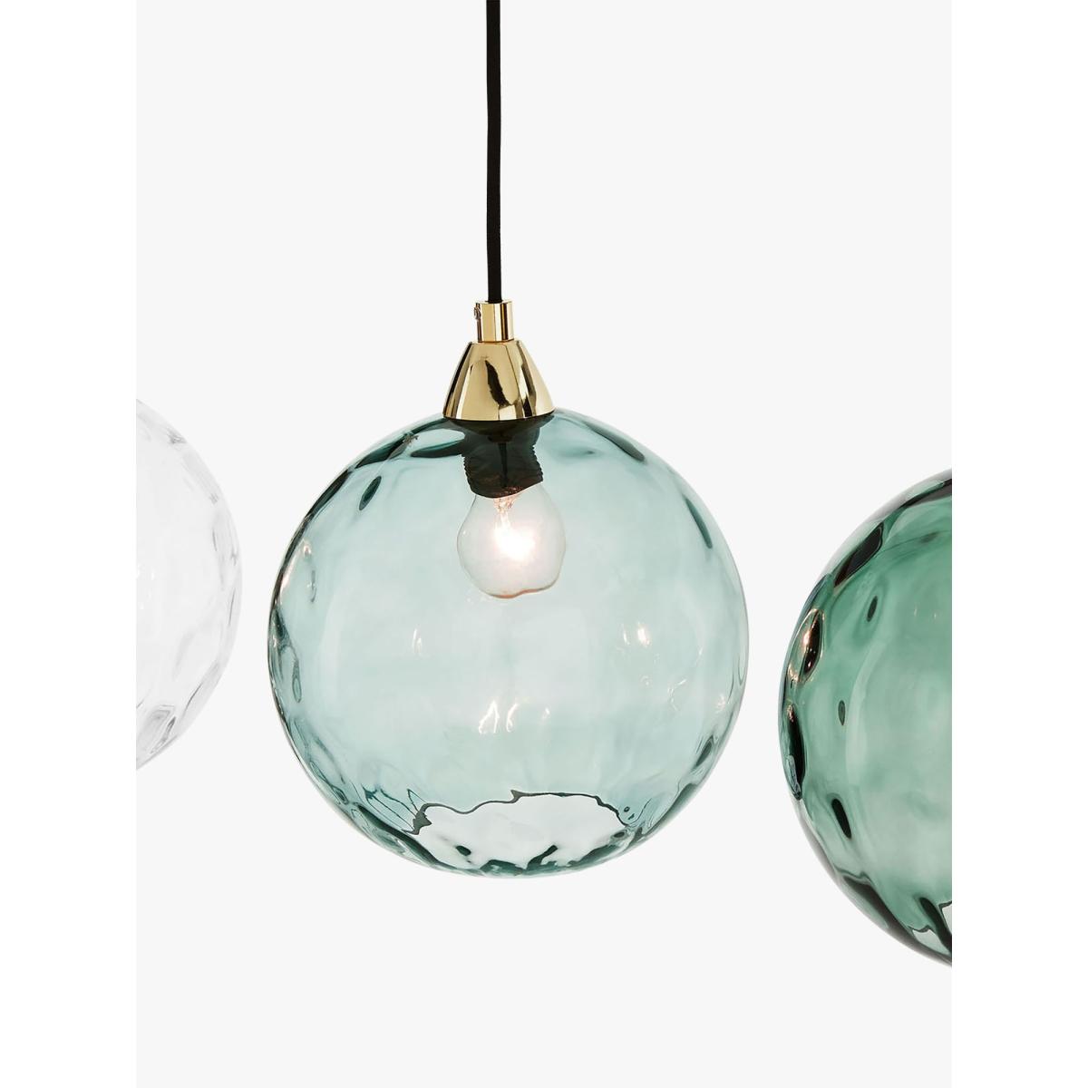 I’m a big fan of the Ilaria 3 pendant for its mix of clear and soft blue-green glass shades and the warm brass bar - it gives off a mellow, diffused glow that works as both task and ambient lighting. The glossy, rounded forms and subtle colour shift suit modern Scandi, mid-century revival or understated industrial schemes. Styling tip: hang it low over a narrow dining table or kitchen island, spacing the three pendants evenly and adjusting the cords for a slightly varied drop. Pair with brass or muted wood furniture and throw in cushions or ceramics in matching green-blue tones to pull the look together.