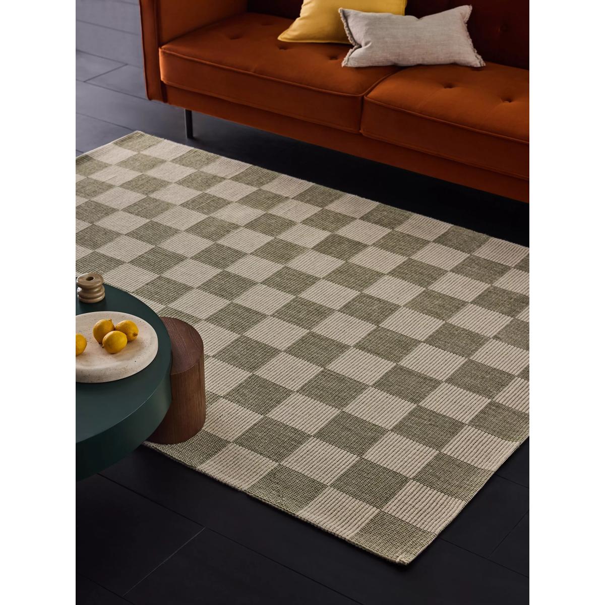 Looking for a floor filler? Juliette is designed in flat-weave wool in a trending neutral checkerboard design. Checkmate. The benefits of a wool rug Warm and durable, wool feels beautifully soft underfoot and is long-lasting Naturally flame-retardant and odour resistant Water-repellent so easier to clean Naturally biodegradable, wool is part of the circular economy and contains no microplastics About your new rug We recommend John Lewis & Partners Rug Hold Underlay. It prevents your rug from moving underfoot and protects against colour transfer to the floor As this rug is made using natural fibres, shedding is to be expected. This will reduce over time and should not have an impact on the lifespan or performance of your rug. When you first get your rug, please use the brush attachment on your vacuum cleaner whilst the shedding dies down. After that, when vacuuming your rug, use suction only. Rotating brushes may damage the fibres. When vacuuming your rug, use suction only. Rotating brushes may damage the fibres Blot any spills with a clean, dry cloth. Do not rub or use harsh detergents. Attend to spillages immediately and blot with a clean, dry cloth to prevent staining. Dilute a small amount of appropriate carpet shampoo in water. Dampen a colourfast cloth in the diluted shampoo solution and dab the rug, lightly agitating, moving in the direction of the pile. Treat the whole rug and not just the affected area. To restore the appearance of the affected area, use a soft-bristled brush to gently comb in the direction of the pile. Allow the rug to dry thoroughly.
