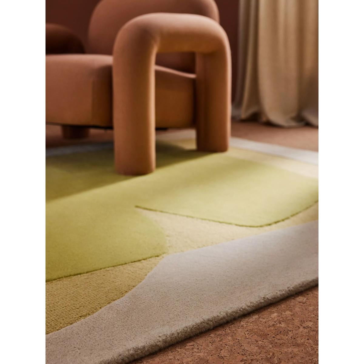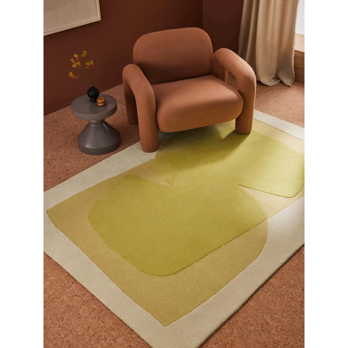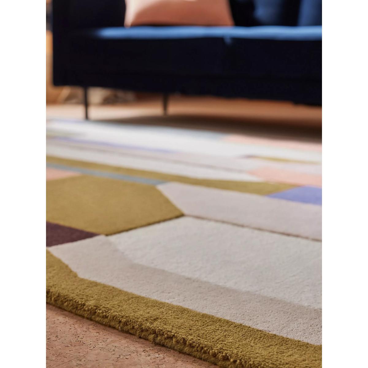Freshen up your floor space with the Kinney rug. Designed with soft curves and tonal hues in an abstract block design on tufted wool. The benefits of a wool rug Warm and durable, wool feels beautifully soft underfoot and is long-lasting Naturally flame-retardant and odour resistant Water-repellent so easier to clean Naturally biodegradable, wool is part of the circular economy and contains no microplastics About your new rug We recommend John Lewis & Partners Rug Hold Underlay. It prevents your rug from moving underfoot and protects against colour transfer to the floor As this rug is made using natural fibres, shedding is to be expected. This will reduce over time and should not have an impact on the lifespan or performance of your rug. When you first get your rug, please use the brush attachment on your vacuum cleaner whilst the shedding dies down. After that, when vacuuming your rug, use suction only. Rotating brushes may damage the fibres. When vacuuming your rug, use suction only. Rotating brushes may damage the fibres Blot any spills with a clean, dry cloth. Do not rub or use harsh detergents. Attend to spillages immediately and blot with a clean, dry cloth to prevent staining. Dilute a small amount of appropriate carpet shampoo in water. Dampen a colourfast cloth in the diluted shampoo solution and dab the rug, lightly agitating, moving in the direction of the pile. Treat the whole rug and not just the affected area. To restore the appearance of the affected area, use a soft-bristled brush to gently comb in the direction of the pile. Allow the rug to dry thoroughly.