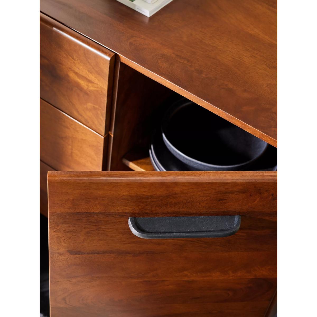 Designed in collaboration with award-winning British furniture designer Tim Fenby, Lucien is the perfect balance of simplicity and craft. With stylish black cast metal hardware, this dark mango wood range deserves the spotlight in your home. Want to see it first? You may want to see and get a feel for the furniture in one of our shops before ordering. We'll be able to tell you where the range you'd like to view is on display.