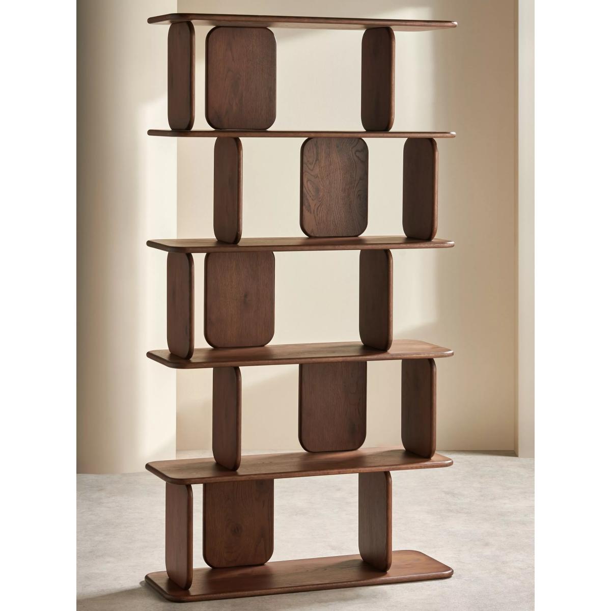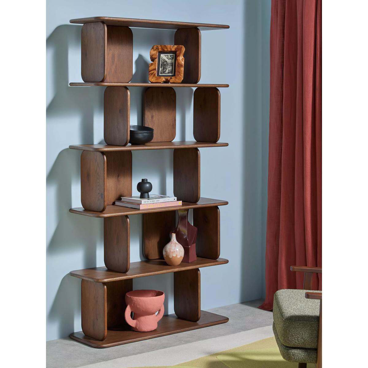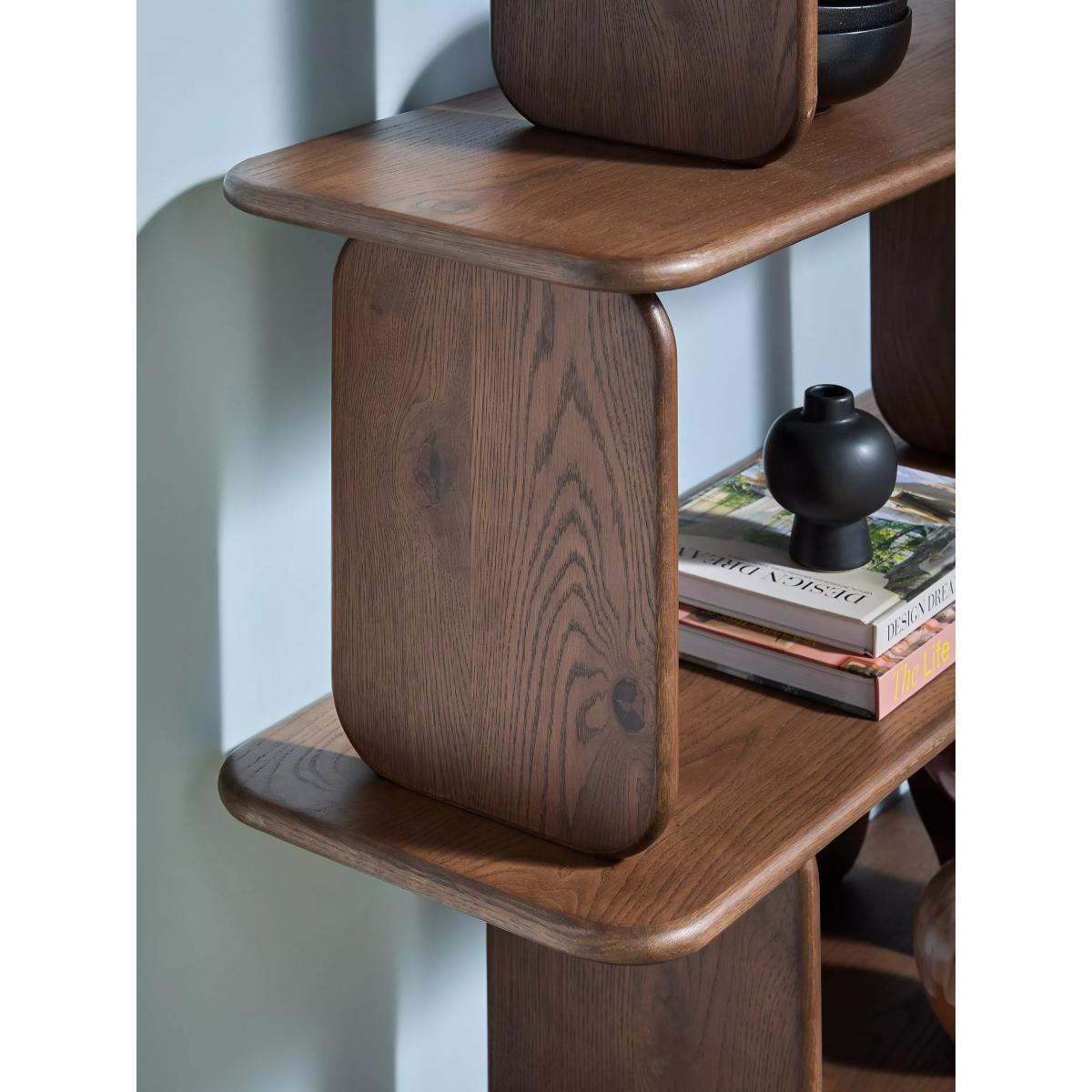 Nyla is a dream furniture find for the organised soul. Designed in dark stained oak and oak veneers, this organic shaped tall shelving unit will add organisational kudos to your space. Want to see it first? You may want to see and get a feel for the furniture in one of our shops before ordering. We'll be able to tell you where the range you'd like to view is on display.