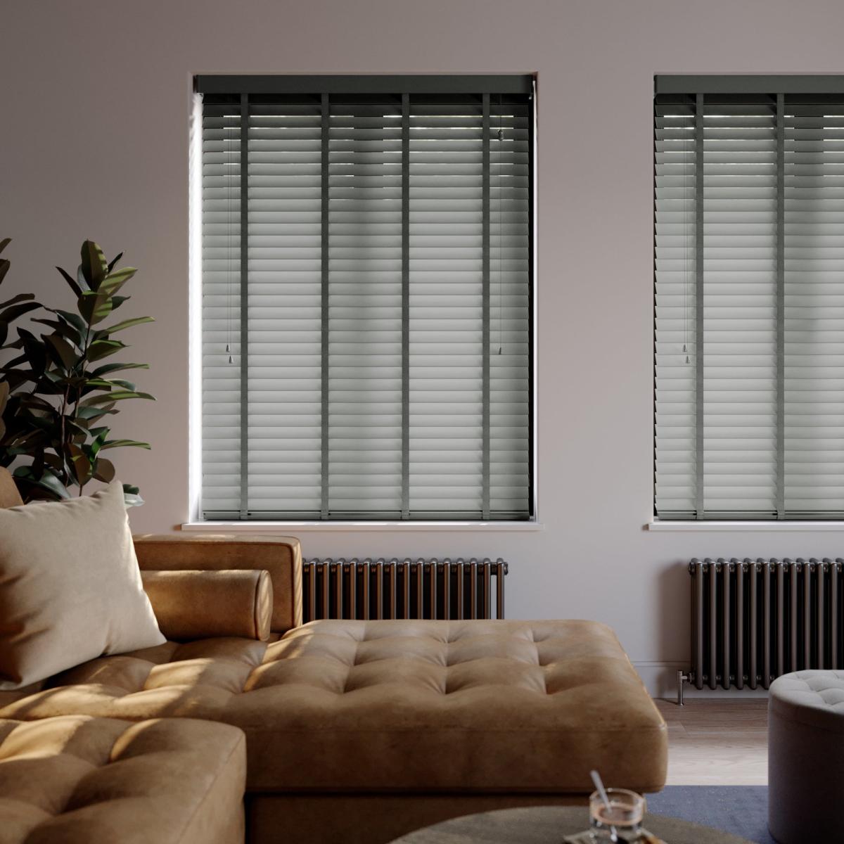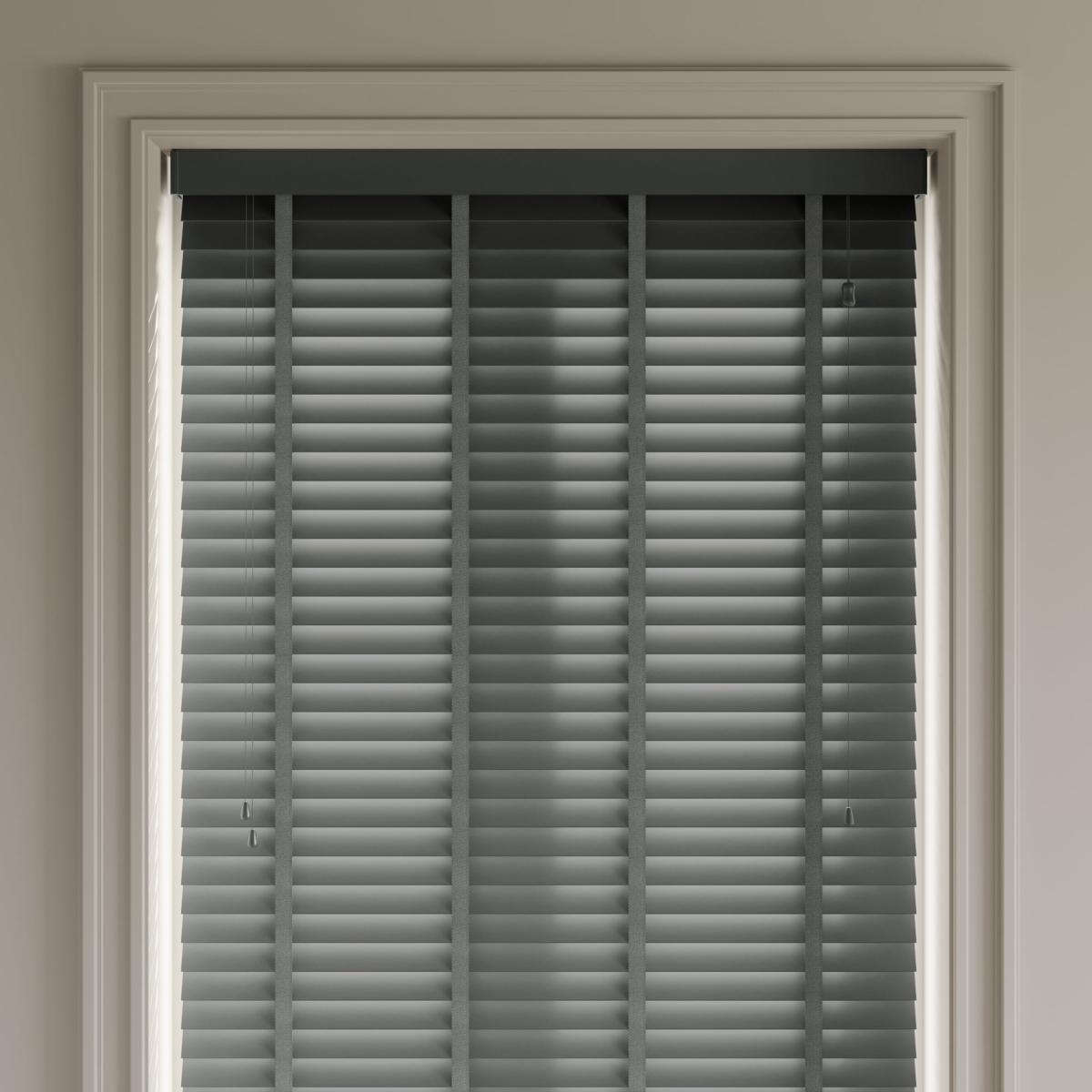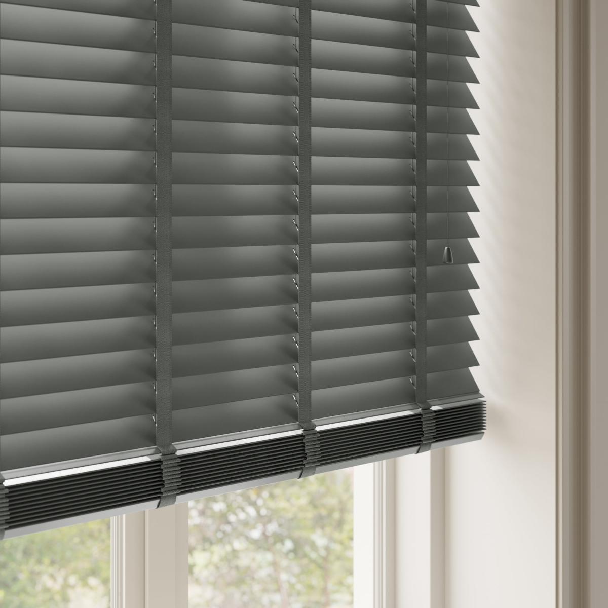 Our Made to Measure Charcoal Tape Venetian Blinds bring you the appearance of real wood with the beneficial characteristics of faux wood. With mould and mildew resistant qualities, your venetian blinds can endure humid environments such as kitchens or bathrooms while a range customise ways and slat sizes allow you to customise your venetian blinds and enhance your space. These venetian blinds aren't your typical, basic blinds, it features modern charcoal faux wooden slats with a luxury tape finish to bring cosiness and light into your room, while you're able to control the brightness and privacy desired to you. Please note: All of our Made to Measure Venetian Blinds are supplied with swivel brackets. Finished drop - Due to the set distances of the slat support rings, achieving the exact size ordered may not be possible. In order to prevent the blind being too short, an extra slat may be added to ensure a suitable drop is reached. This will result in the blind having a slightly longer drop than originally ordered.