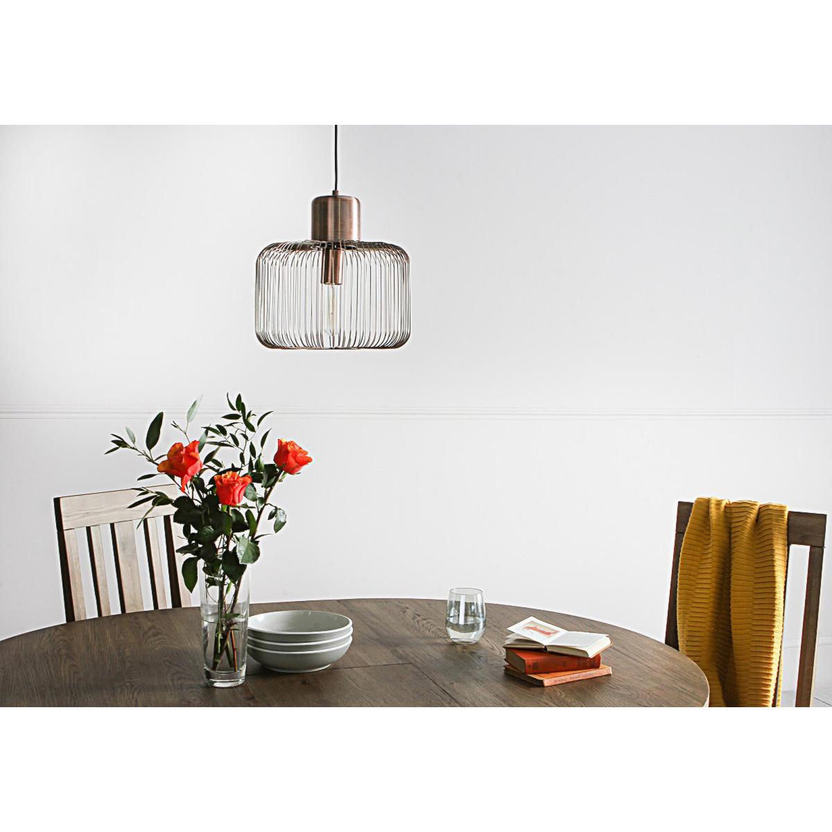 Introducing the Madeleine pendant, one of our favourite pieces within our contemporary lighting collection. This captivating shape blends vintage and industrial style beautifully with its sculptural metal cage shade and antique copper finish for extra luxe. The Madeleine is a delightful design, even more, when paired with a vintage filament bulb and hung extra low over a dining table to create an intimate and cosy atmosphere.