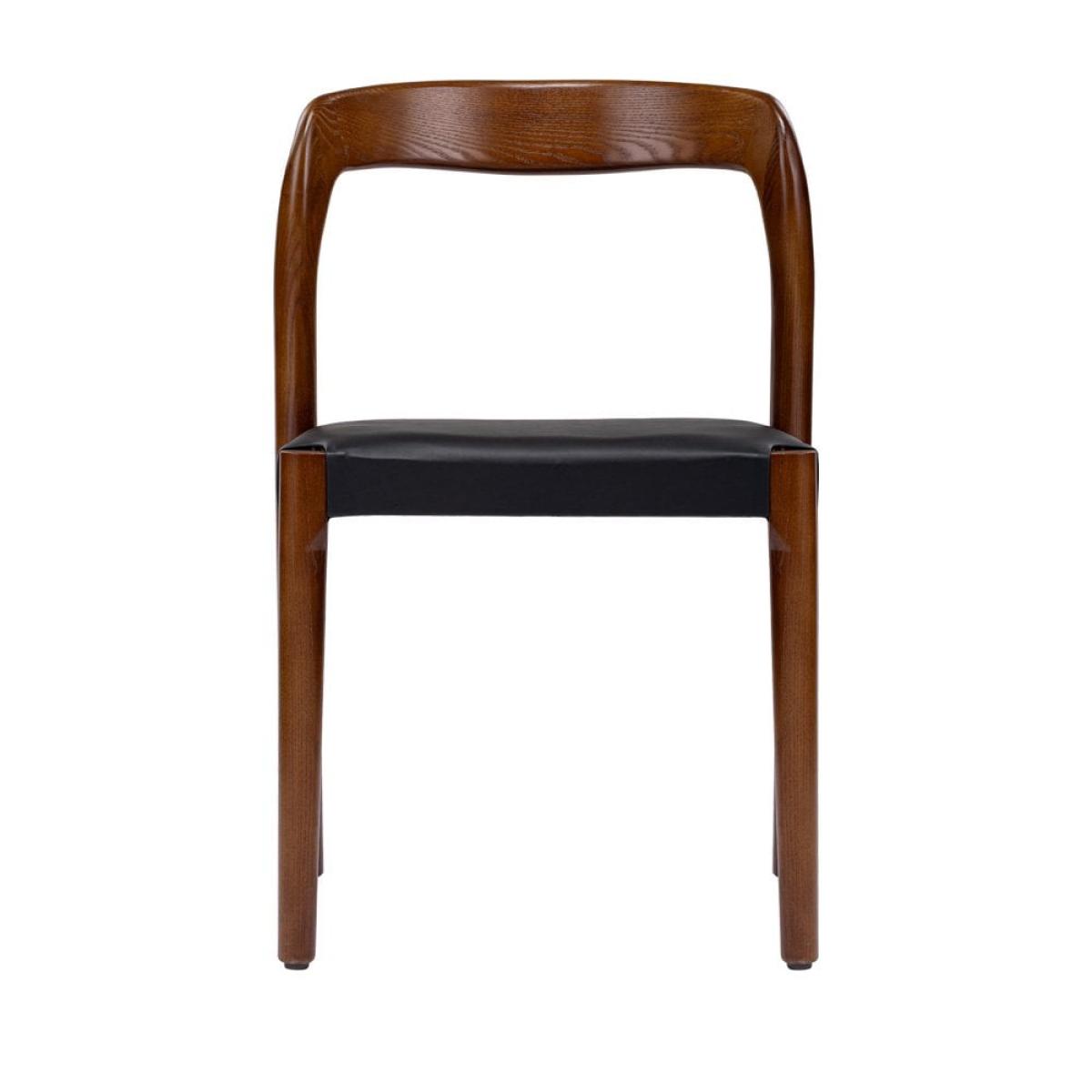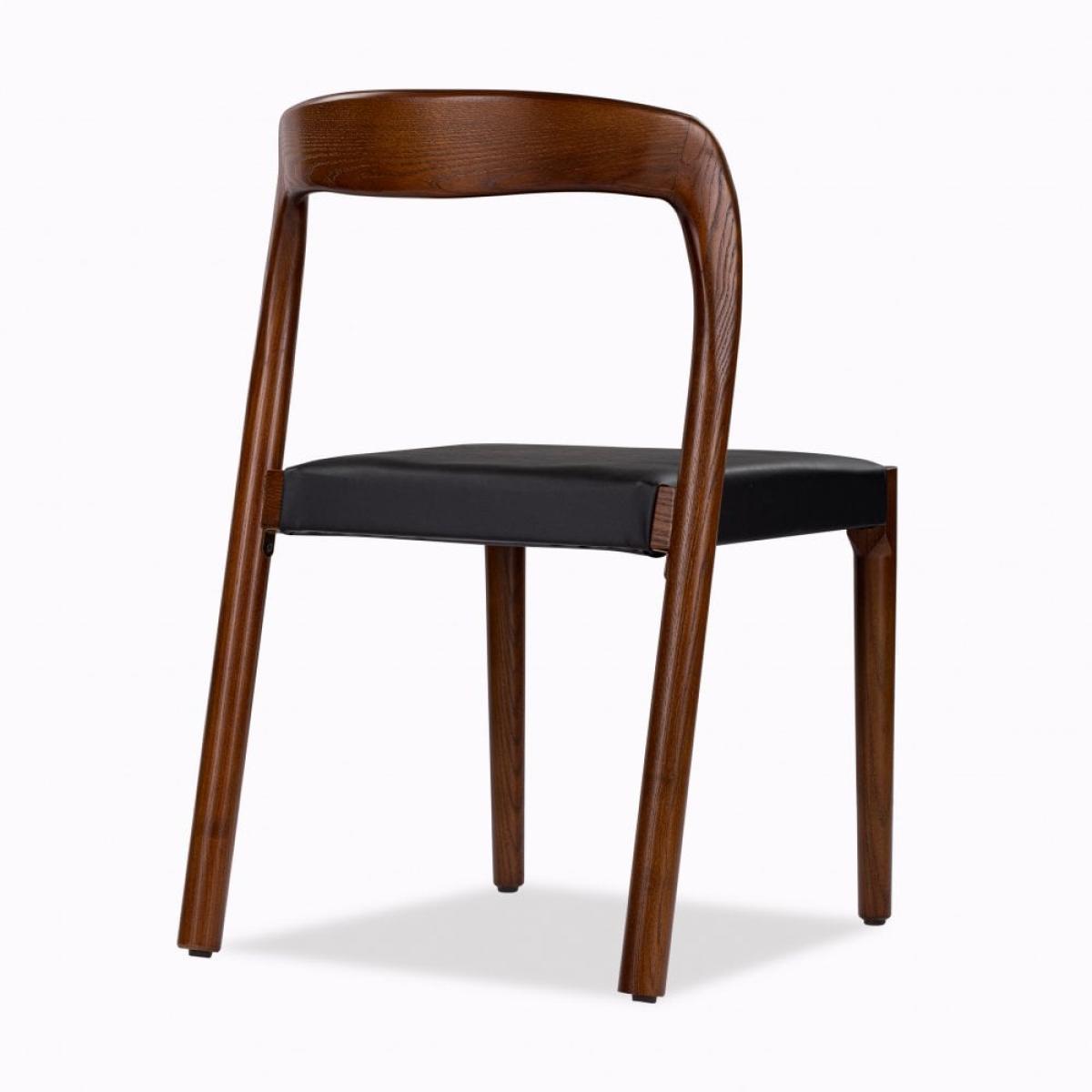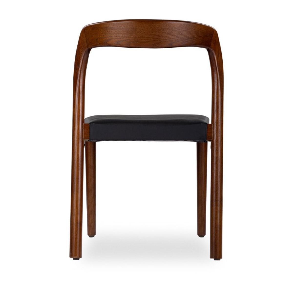 The Madeleine Wooden Dining Chair is the epitomy of Mid-Century Modern Design with its curved wooden backrest and faux leather seat. The frame is walnut-stained for a rich and warm finish, with black faux leather seat. Style meets functionality with this dining space showstopper that is also stackable.